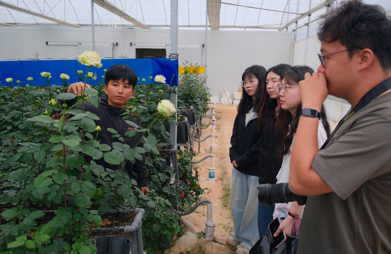 在艾蔷薇育种基地,团队了解到企业通过挖掘中国古老蔷薇连续开花基因,培育具有自主知识产权的新品种。“国内90%的月季依赖进口,每售一枝需支付3%-10%专利费。”企业创始人介绍,团队已突破年采收百万粒杂交种子的技术瓶颈,申报200余个新品种,6个获国家专利。通过“企业+农户+科研”的链条带动当地村民就业,人均年收入超5万元,让昔日的贫困村跃升为省级科技示范村。
