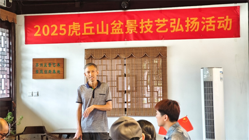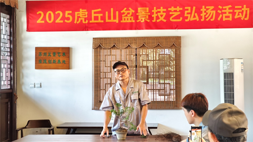 2025 年 7 月 23 日,虎丘景区花神庙内绿意葱茏、雅韵流淌,苏州旅游职业学院文化旅游研究院主办的 “2025 虎丘山盆景技艺弘扬活动” 在此圆满开展。这次活动,如一阵清风拂过盆景艺术的园地,让苏派盆景的千年匠心在虎丘的灵秀山水间愈发璀璨。