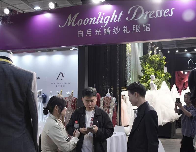 本届婚博会启用13号展馆,展览面积达9600平方米,全面覆盖了婚庆产业链的各个环节。在婚纱礼服方面,琳琅满目的婚纱、礼服惊艳亮相,无论是传统的中式秀禾服、龙凤褂,还是时尚的西式婚纱、晚礼服,都展示了当下最前沿的设计潮流和精湛工艺。从简约优雅的款式到华丽繁复的装饰,从轻柔飘逸的面料到璀璨夺目的珠绣,每一件婚纱礼服都凝聚着设计师的巧思与匠心,为准新人们提供了丰富的选择。