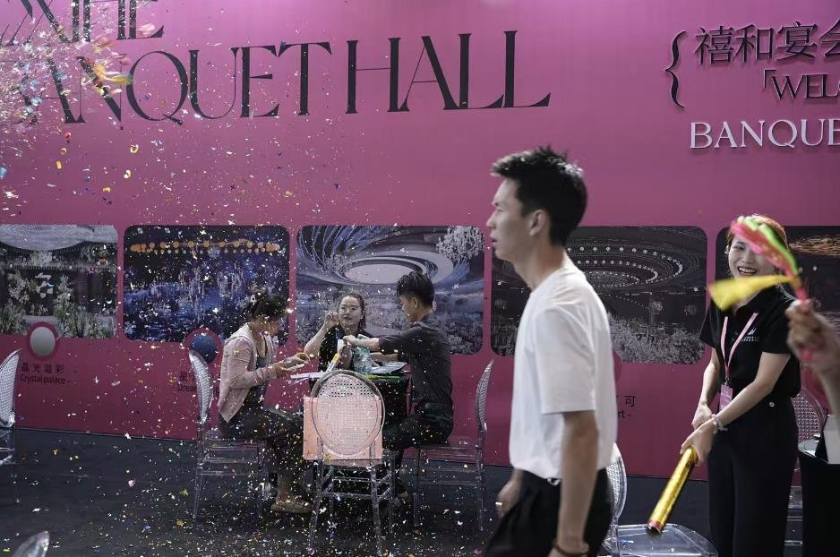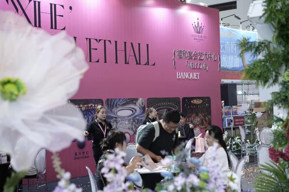 婚宴酒店方面则汇聚了昆明及周边地区的多家知名酒店和餐厅。参展商家们精心布置展位,展示了各具特色的婚宴场地,从精致套餐到贴心的服务细节,都为准新人们提供了全方位的了解与比较。在这里,准新人们不仅可以实地感受婚宴场地的氛围,还能品尝到酒店精心准备的菜品,与酒店工作人员深入沟通婚宴的各项事宜,为婚礼的用餐环节做好充分准备。
