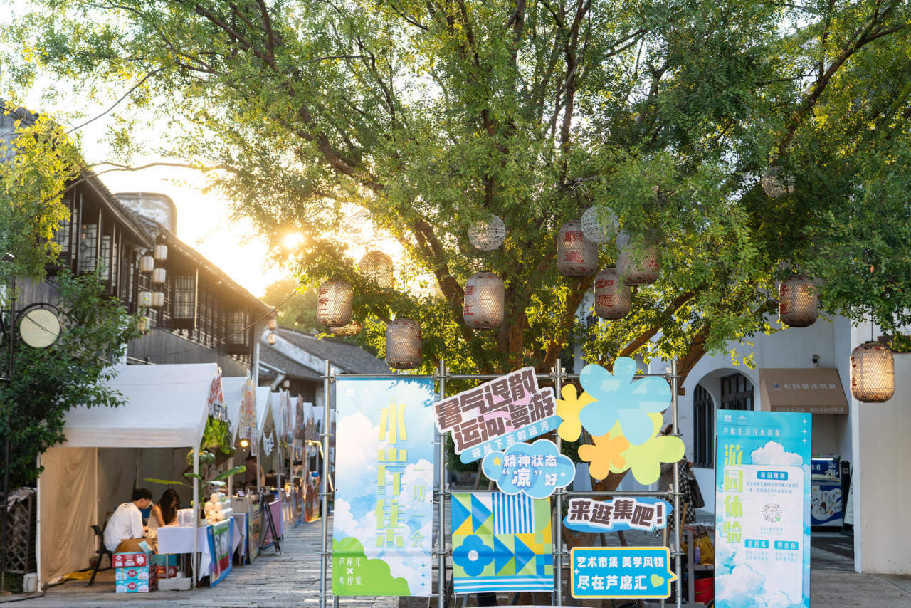 逛累了,这个周末的芦席汇“水岸集”里,还有星空露天电影院,让观众一边稍作休憩,一边在夏夜晚风中重温年少时露天观影的乐趣;没时间去外地音乐节的市民,还可以在芦席汇参与一场“水岸音乐会”——随着飞行家乐队在晚风里浅吟低唱,感受都市夜晚的慵懒与精致;间或,随着吉他、鼓手的Solo“炸”穿夜空,体会脸红心跳的那份悸动;或在梦幻泡泡秀中随音乐摇摆,承包今夏最浪漫的打卡胜景……
