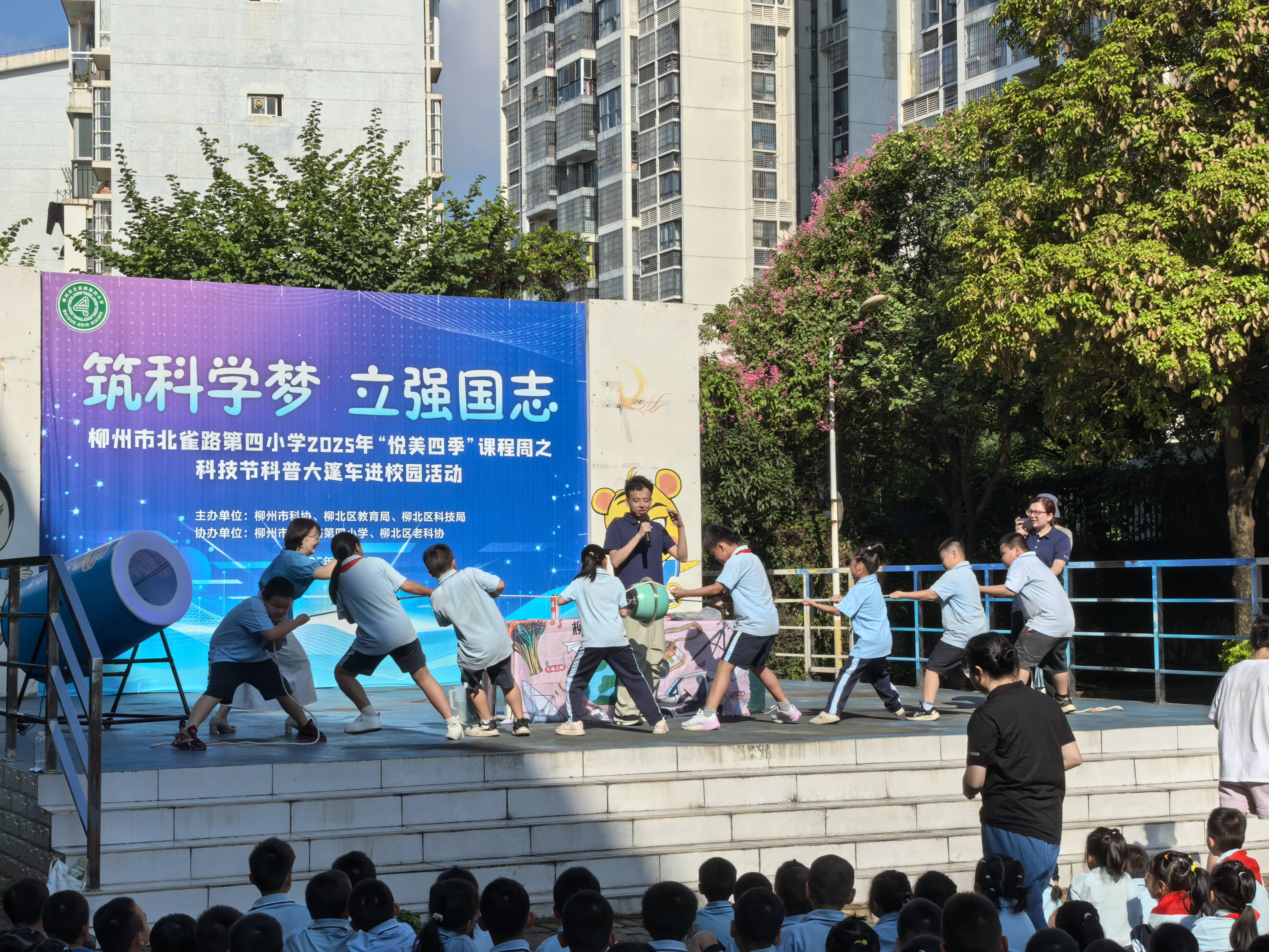 金秋送爽,丹桂飘香。9月28日上午,由柳州科技馆展教部团队全程参与并主导、在广西第三批科学家精神宣讲团成员、广西科普演讲团柳州分团团长、柳州市老科协副会长、柳州市教育局原党委书记殷茁雄亲临指导下,“筑科学梦、立强国志”科普大篷车进校园科技节活动在柳州市北雀路第四小学拉开序幕。