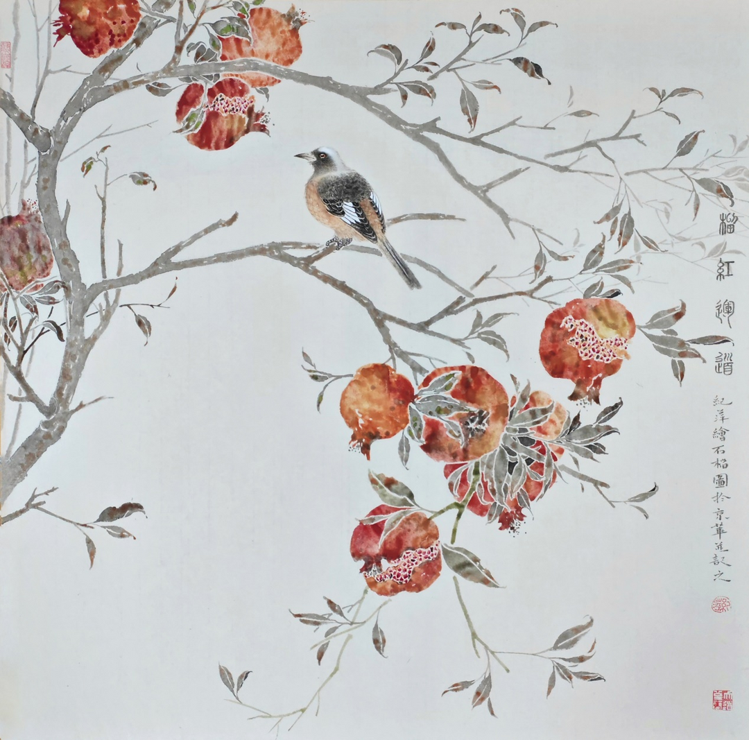 《榴红运道》69×69cm