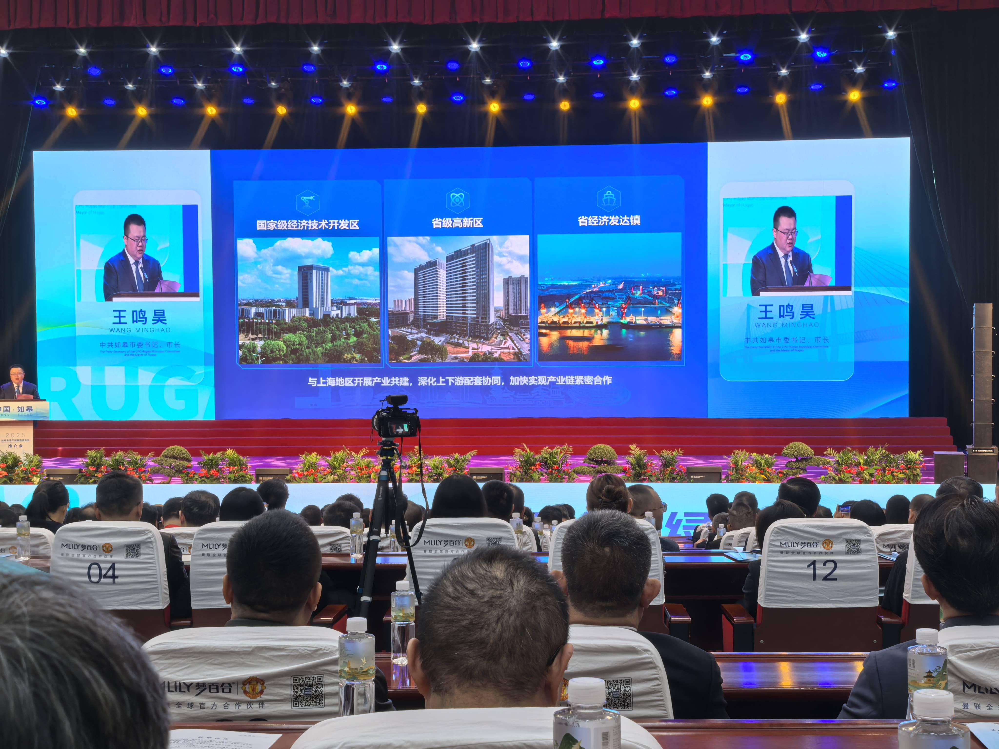 大会启幕,《如皋发展促进会章程》轻置膝上。灯光聚焦处,如皋市委书记、如皋市市长王鸣昊登台致辞,话语间既有对“人文厚土”与“产业沃土”的深情回望:张謇兴实业、办教育的开拓之志,冒辟疆守风雅、传文脉的赤子之心,沙元炳兴学堂、惠民生的济世情怀,皆在言语间流转。指尖轻叩处,如皋市江港枕江、如皋市通道飞架、如皋市高铁驰奔、如皋市高速纵横的通达气象跃然屏上,恰是如皋市“南通接轨上海、融入苏南重要门户”的生动注脚。