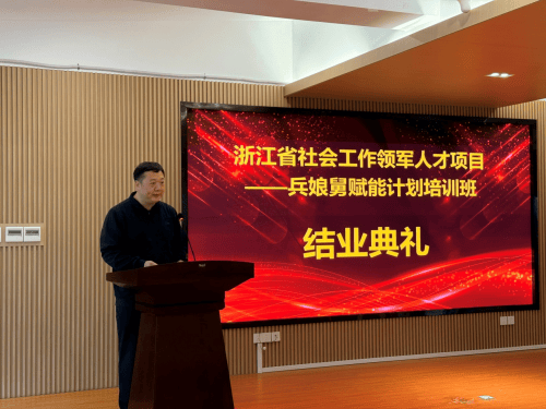 浙江省社会工作领军人才项目——“兵娘舅”赋能计划培训班,自2025年3月9日正式启动,通过请进来授课、走出去取经,边学习、边交流、边践行、边总结双向赋能,全面提升,于11月9日在新昌县南明街道鼓山社区新邻里中心隆重举行结业典礼。整正8个月来,学员们认真听课学用结合,赋能激发潜能,人人争做能手,促进了社会治理工作升级,矛盾纠纷调解扩面,“兵娘舅”品牌效应进一步显现。
