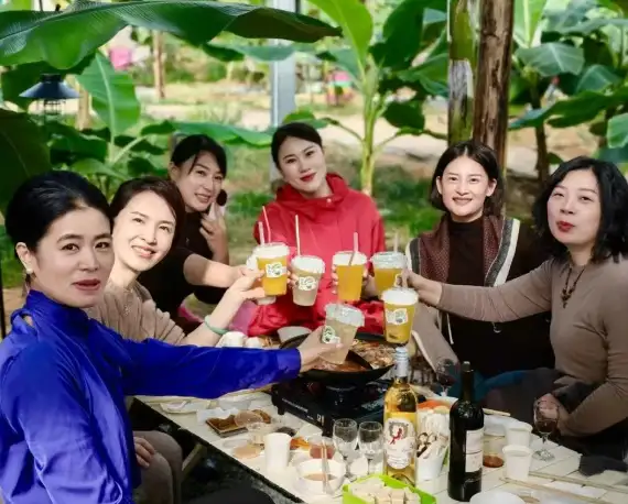 待到暮色渐浓,围炉煮茶便是最惬意的时光。炭火炉上,茶壶咕嘟冒着热气,陈皮、红枣与茶叶交融出醇厚香气,搭配干果与新鲜水果,和亲友围坐闲谈,看炭火明灭,听雨林私语,把生活的烦恼都融进这慢节奏里。若是喜欢热闹,还能伴着星光开启轻量派对,K歌、趣味小游戏轮番上演,让欢笑回荡在林间。