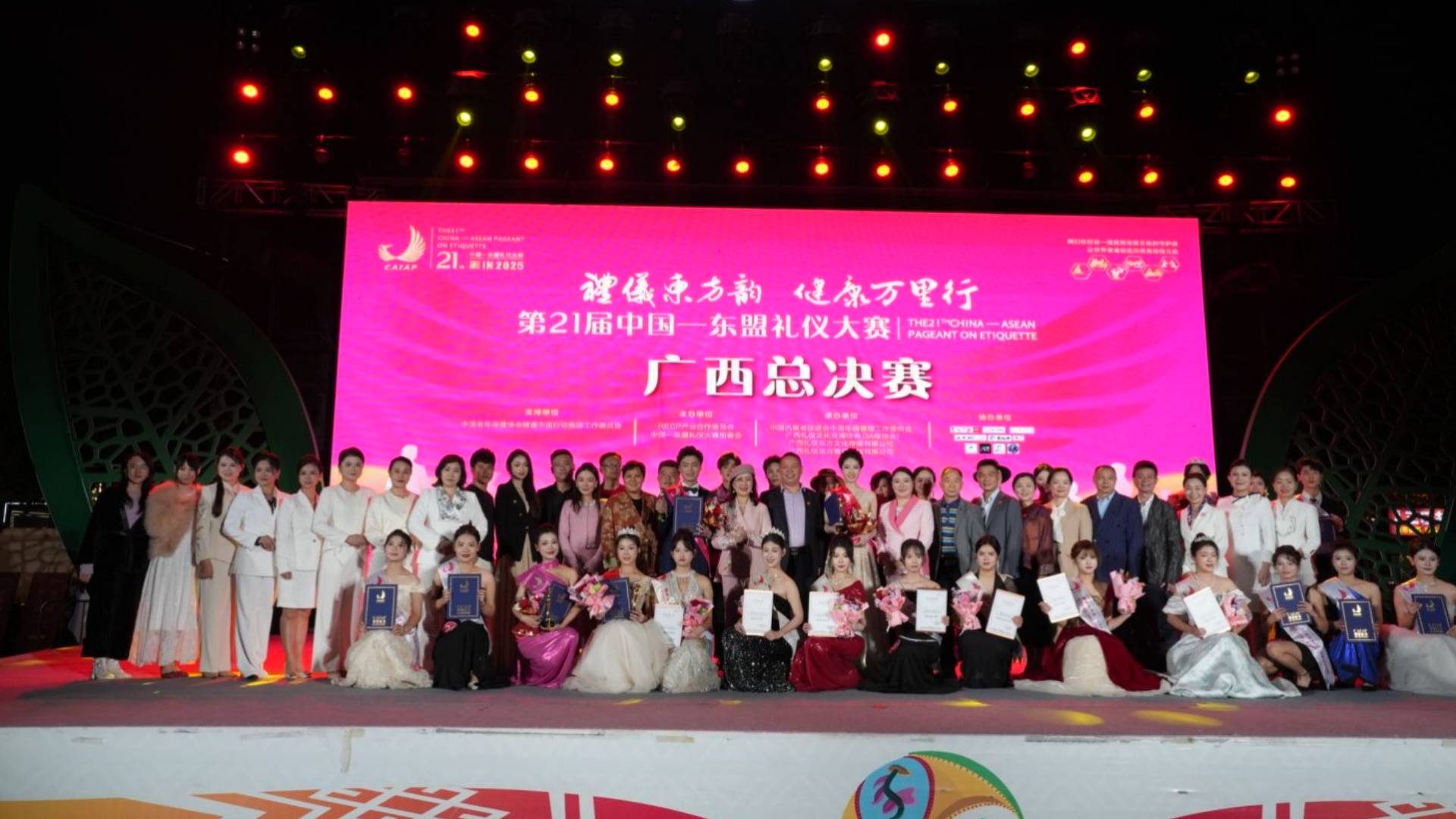 11月30日晚,南宁百益上河城艺术中心广场星光璀璨、掌声雷动,“礼仪东方韵,健康万里行”第21届中国-东盟礼仪大赛广西总决赛在此圆满礼成。来自各地的参赛选手以礼为媒、以艺为桥,在舞台上展现东方礼仪之美与健康生活之态,为现场观众呈现了一场融合文化传承与时代精神的视听盛宴。