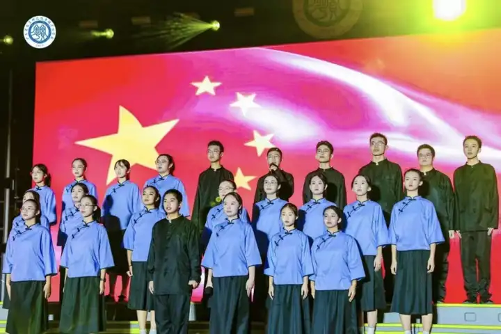 夜幕低垂,舞台之上灯光璀璨如星河,少年们的身影翩然灵动,瞬间点燃全场氛围。红色经典剧目轮番登场,掀起一波又一波情感热潮:《南湖红船》以深情演绎回溯峥嵘岁月,一叶红船载起百年风雨征程,让观众在沉浸式体验中感悟初心使命;《跟你走》的歌声铿锵有力、饱含赤诚,唱出了新时代少年对信仰的坚定追随与无限热忱;“九一八” 抗日英烈主题节目则肃穆深沉,演员们以真挚的情感、精湛的表演,用艺术之声缅怀先烈、致敬英雄,让爱国情怀在每一位师生心中激荡回响,厚植家国情怀的种子。