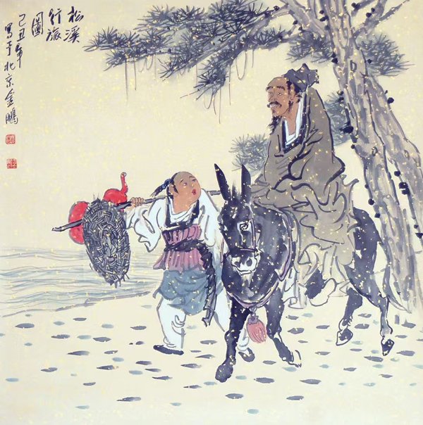 观赏赵金鹏的画作,就像是进行一场心灵的旅行。我们能在他的山水之间感受到宁静与悠远,能在他的人物之中体会到人情冷暖。他的作品不仅给人以美的享受,更能引发人们对生活、对人性的思考。