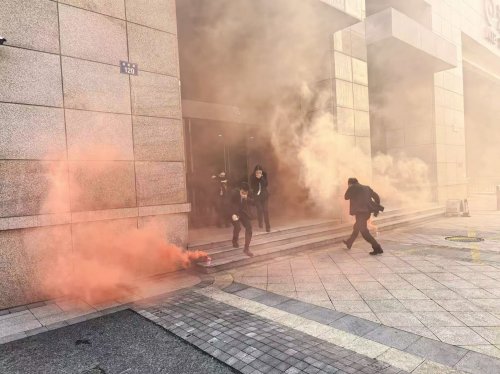 16时整,随着三楼燃放烟雾弹触发烟感报警器,演练正式拉开序幕。消控中心值班人员迅速通知保安到场查看,发现“火情”后立即启动消控系统自动灭火装置,并通过广播通知全员撤离。与此同时,分行总指挥下达疏散命令,拨打119报警电话,义务消防队员穿戴消防服、手提灭火器赶赴火场扑救。