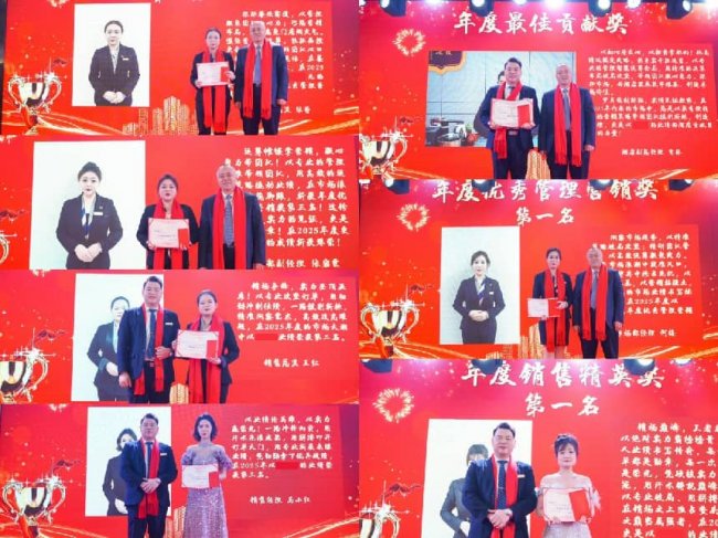 酒店对2025年度的优秀员工进行了表彰,同时还颁发了最佳忠诚守护奖、年度宣传活力之星、年度宣传形象之星、年度宣传领航之星、年度销售精英奖、年度优秀管理营销奖、年度餐饮预定先锋奖、年度最佳贡献奖。
