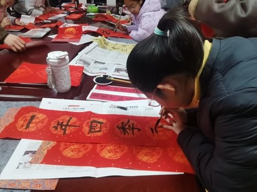 参加学春联活动的学员们大多是小学生,别看他们年纪不大,但学习书法的时间都在5年以上了,功底扎实,书法作品如行云流水,引得社区居民纷纷竖起大拇指,并上前邀请学员们为他们书写春联。