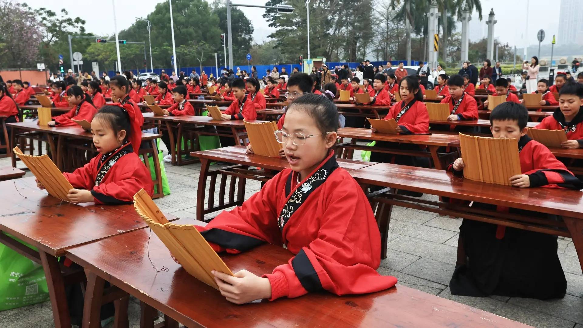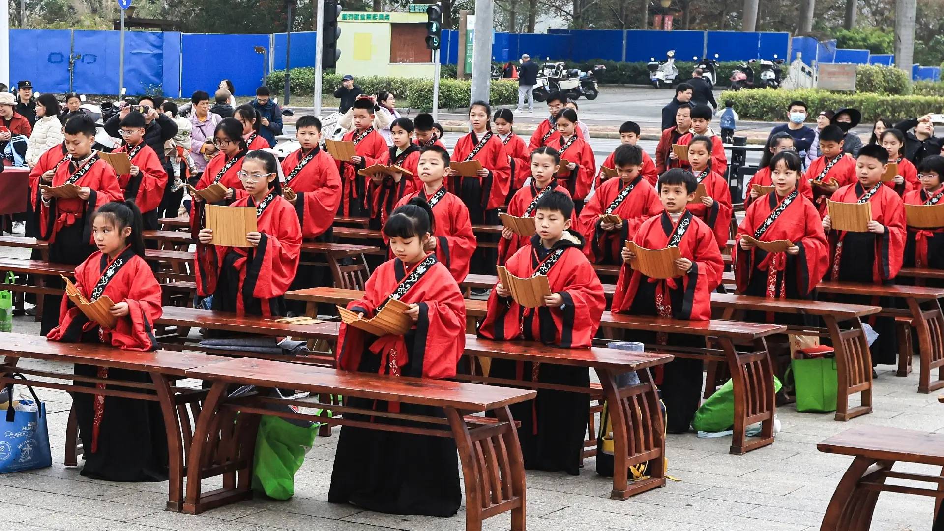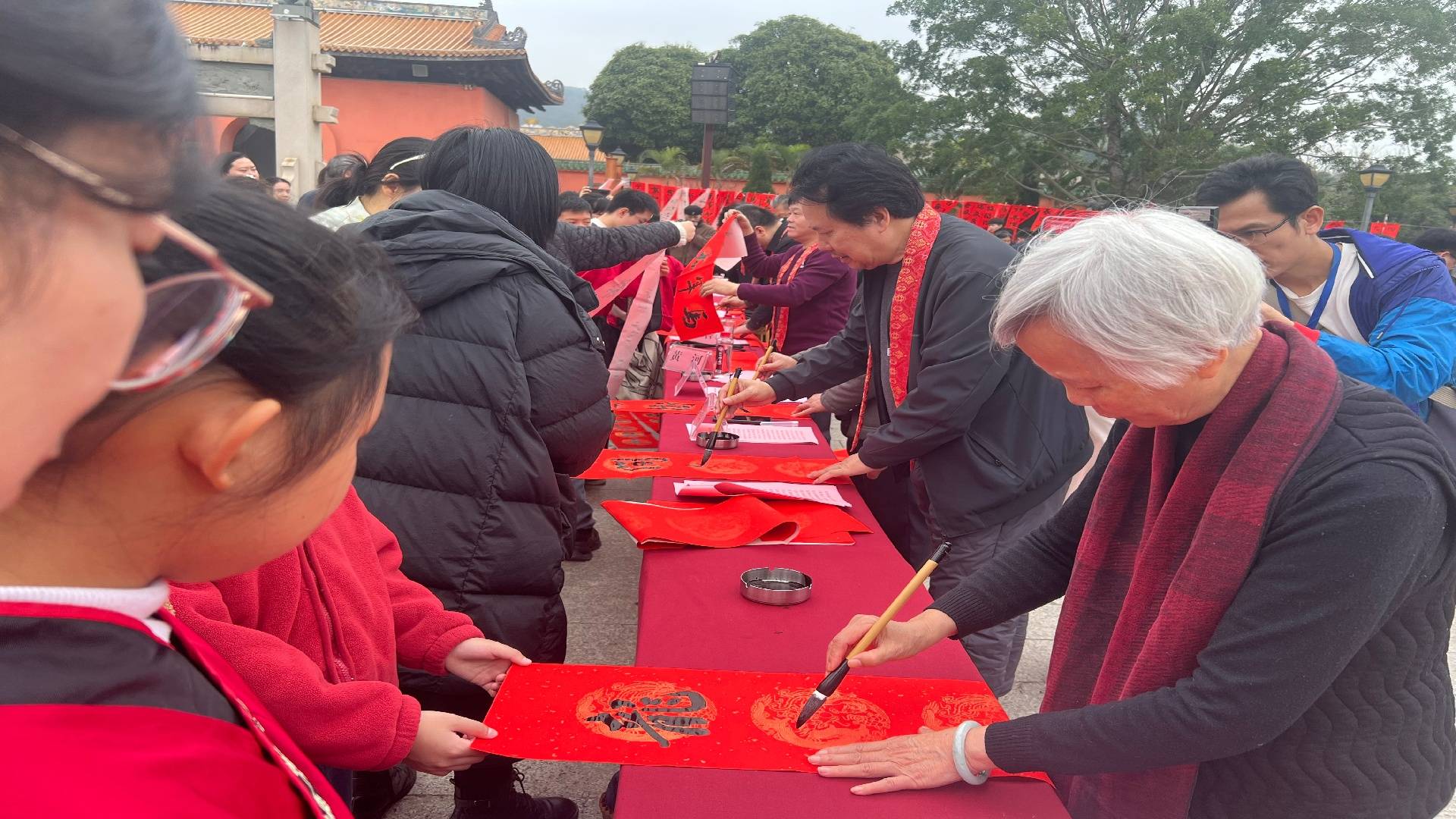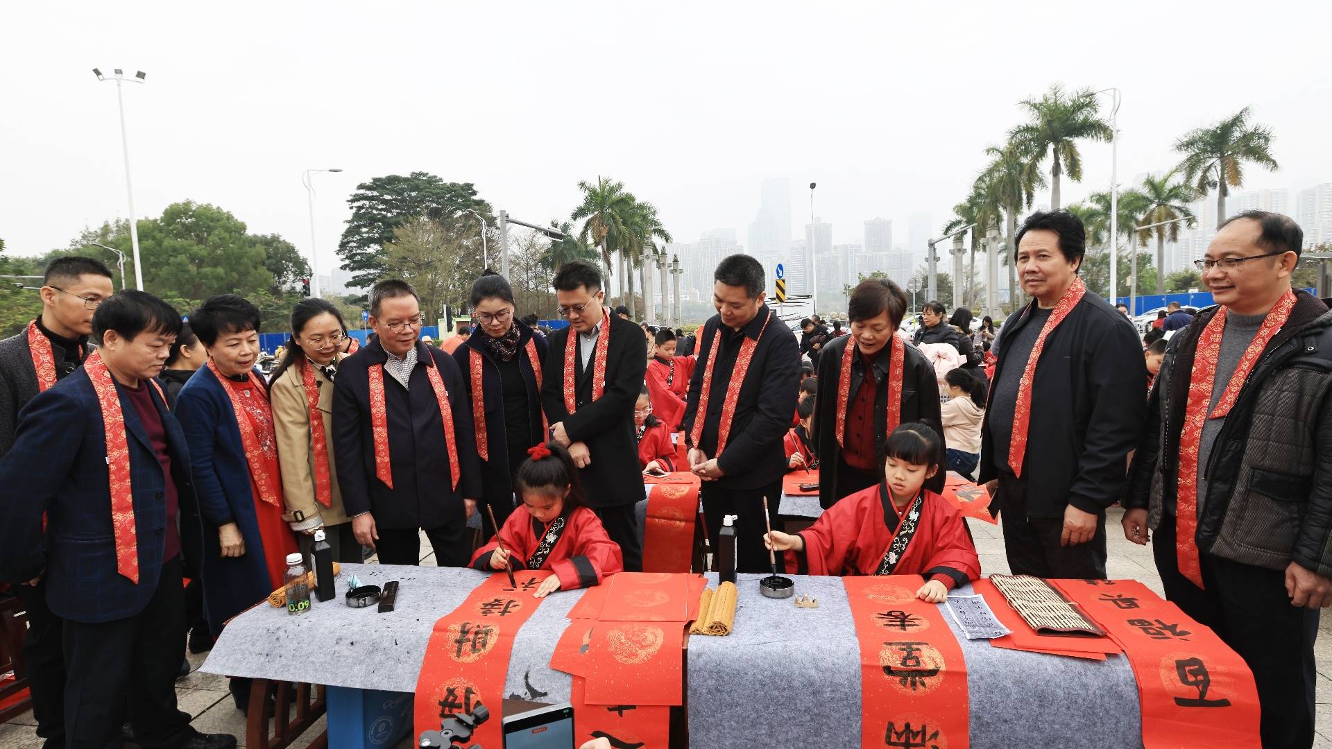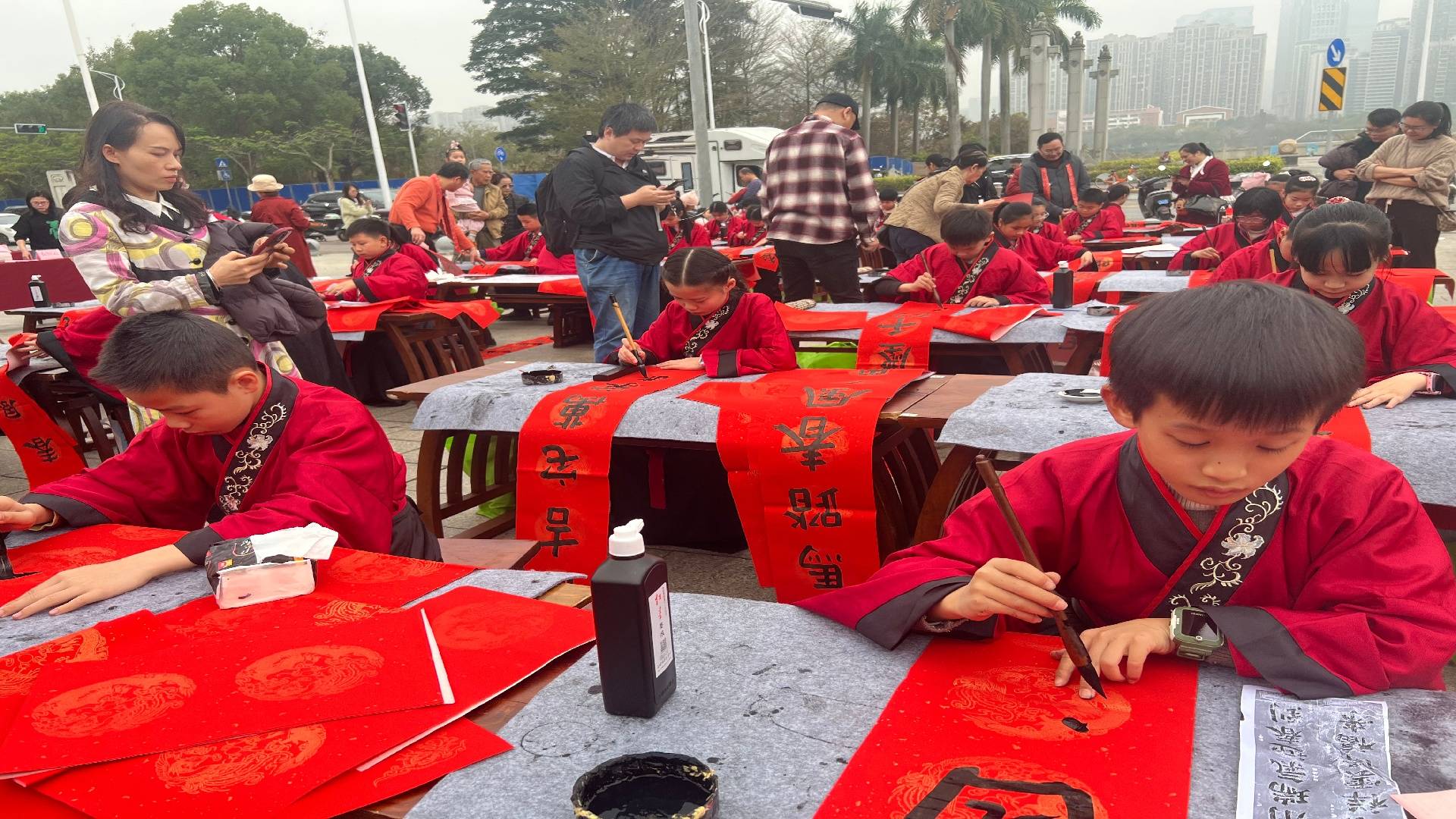 参加本次活动的还有来自广西文联、广西书协、南宁市文联、南宁市文旅局、南宁孔庙管理所、南宁市书法家协会广西日报,广西电视台,南宁市融媒体中心,新华在线网等等社会各界和新闻媒体界的朋友,以及南宁市少年儿童“书法成长课堂”师生、家长和广大市民群众共300多人,齐聚一堂,共襄这场文化与年俗交融的盛宴。