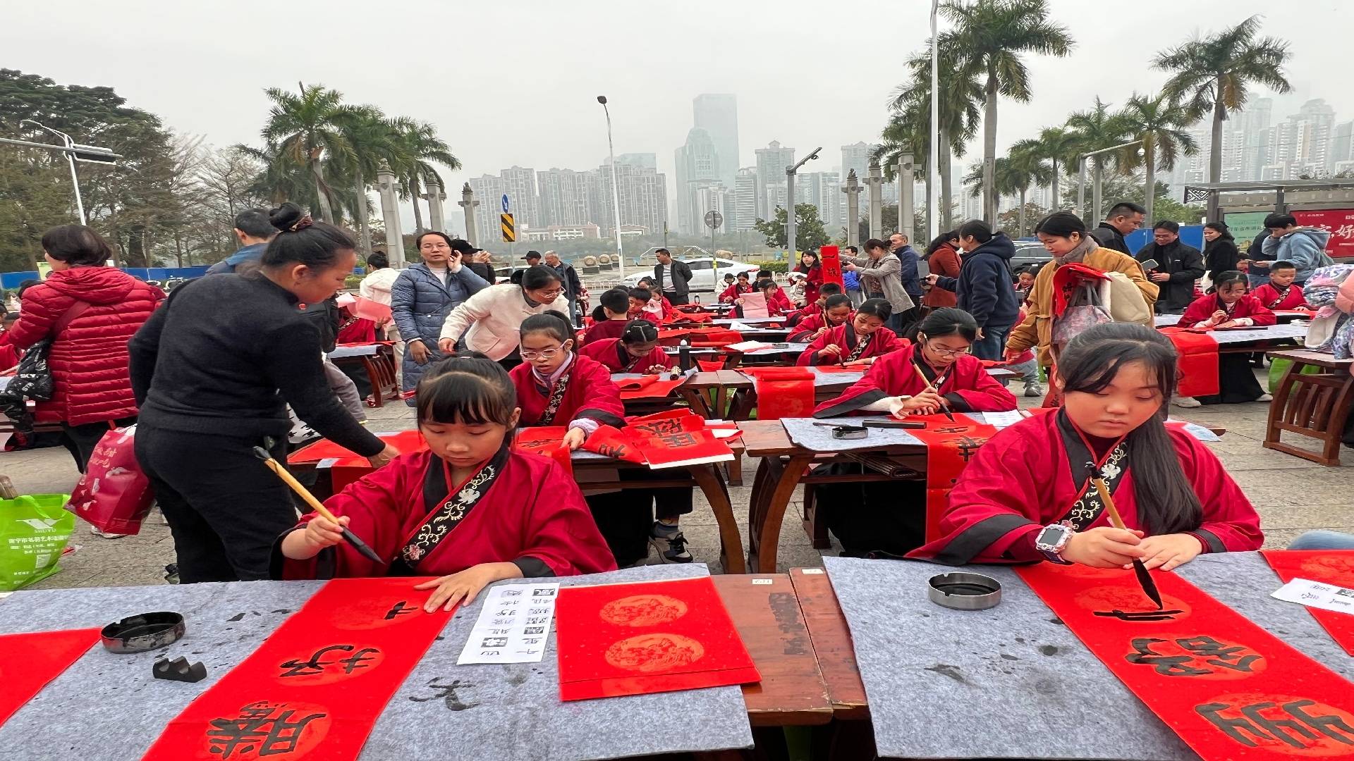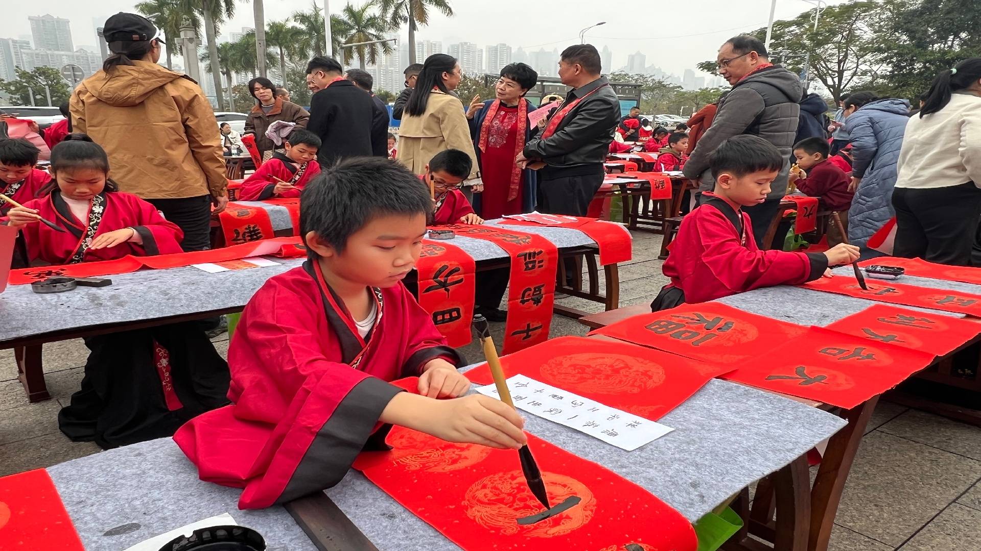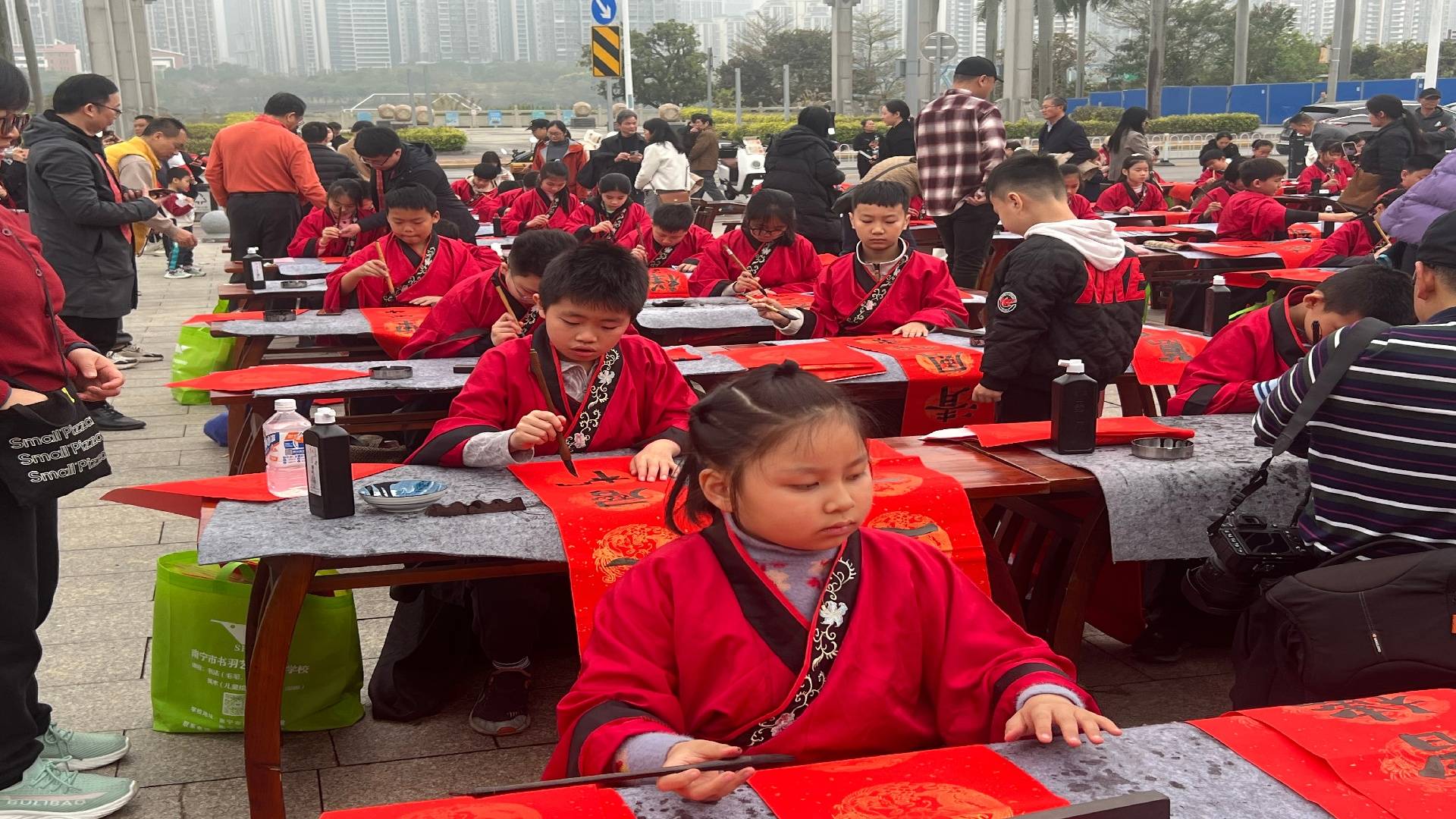 “新年纳余庆,嘉节号长春”,为贯彻落实党的精神,深入学习、弘扬和传承中国传统文化,活跃春节期间南宁市民及少年儿童的精神文化生活,营造健康、祥和、欢乐的节日氛围,2月5日上午,由广西书法家协会、南宁市书法家协会与南宁孔庙管理所联合主办的广西2026丙午马年“万福迎春”公益活动暨“咏经典 写春联”、“我家春联我书写”活动在南宁市孔庙隆重举行。广西的20位书法名家和南宁市少年儿童“书法成长课堂”的120名学生们同台挥毫、书写春联,向大家送上新春的祝福!