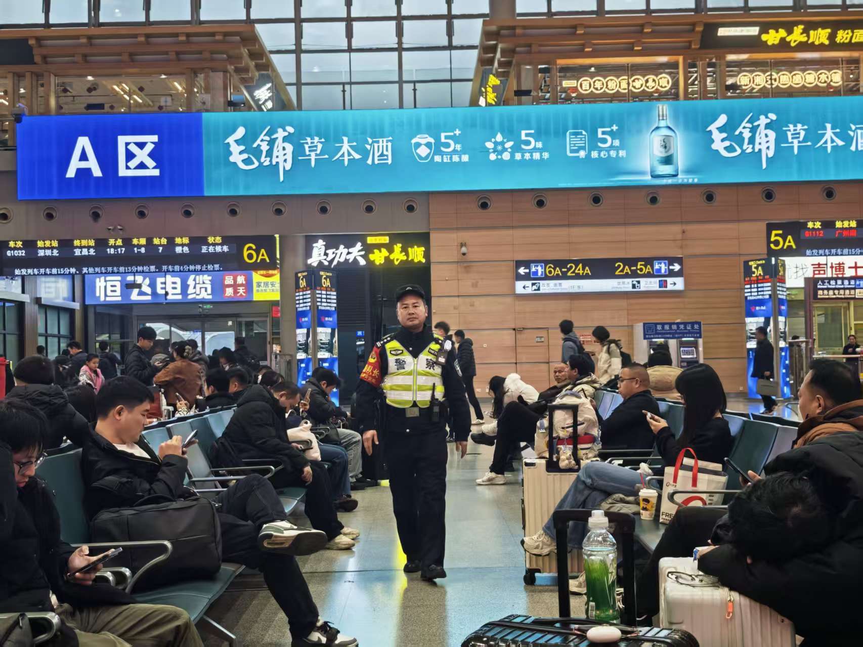 执勤警务大队大队长钟亚,也将迎来自己连续第10个在岗位上度过的除夕。作为一线带队负责人,他始终冲锋在前、坚守前沿,统筹站区巡逻防控、警情处置、服务旅客等各项工作,用责任与担当守护站区平安,用实际行动诠释“人民公安为人民”的铮铮誓言。他们舍小家、为大家,放弃与亲人团聚的时光,只为守护更多旅客平安回家、顺利团圆。