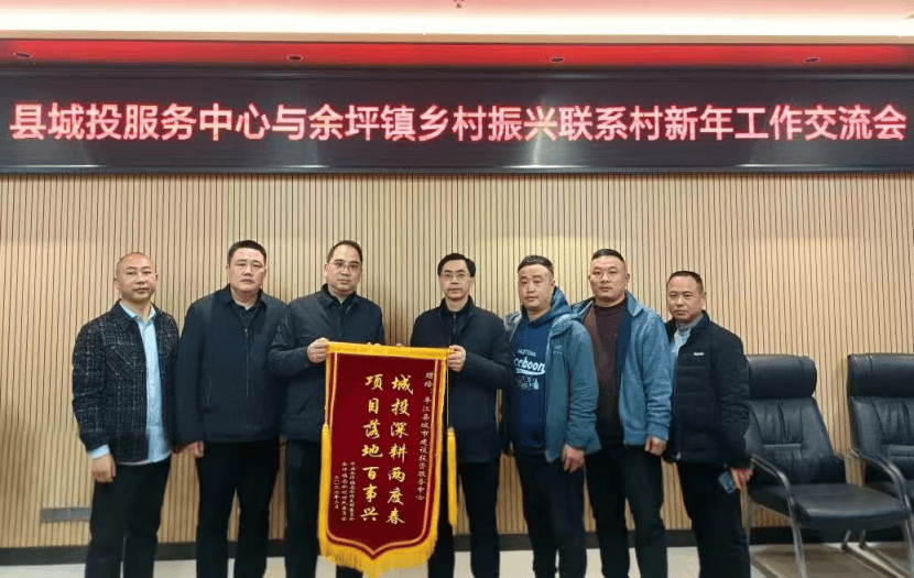 律回春渐,新元肇始,近日平江县余坪镇党委书记胡奇林,党委副书记、镇长余振华率镇、村两级干部一行,专程来到平江县城投服务中心,将一面绣有 “城投深耕两度春,项目落地百世兴” 的金字锦旗郑重赠予中心,以最质朴、最诚挚的方式,感谢县城投服务中心两年来扎根基层、倾心帮扶,为余坪镇乡村振兴注入强劲动能、带来深刻变化。鲜红锦旗熠熠生辉,既是镇村两级对驻村帮扶工作的高度认可,更是党群同心、携手振兴的生动见证。