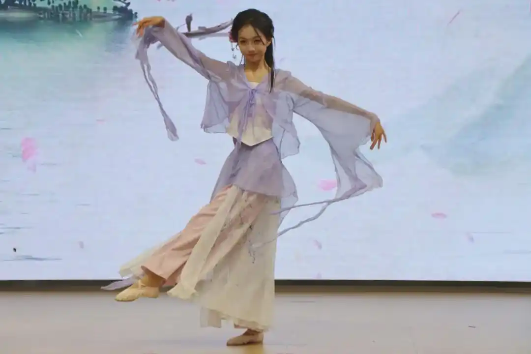 教师节目《祖国不会忘记》以铿锵歌声展现育人初心,舞蹈串烧《御剑飞行》则用现代编舞诠释少年侠气。节目编排兼顾传统与现代,既有《游京》《咏春》的国风雅韵,也有《New Boy》《热血青春》的时代强音。八年级学子以扎实的功底和细腻的情感,将课堂所学转化为舞台所演,充分体现学校“以美育人、以文化人”的教育成果。这不仅是艺术的展示,更是素质教育成果的生动体现。