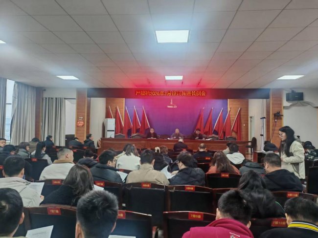 2026年03月23日,新邵县严塘镇武装部在镇召开三月份民兵连长例会,会议由严塘镇党委委员武装部长唐洋坚主持,全镇28个村(社区)民兵连长及民兵干部参加会议。