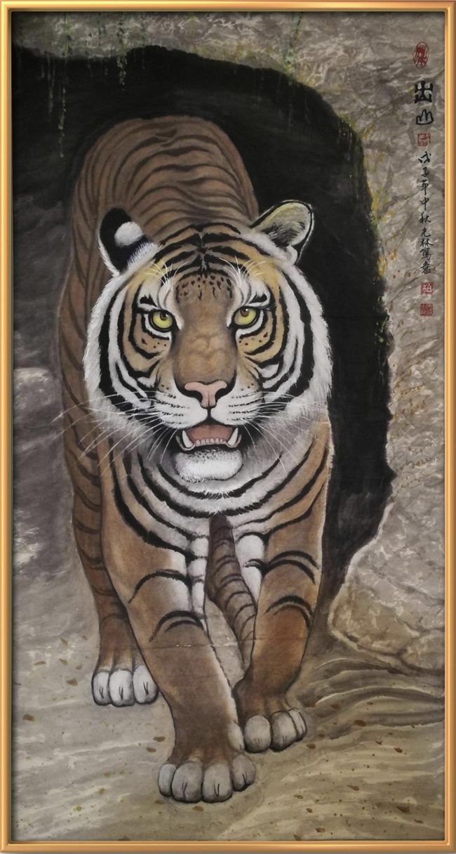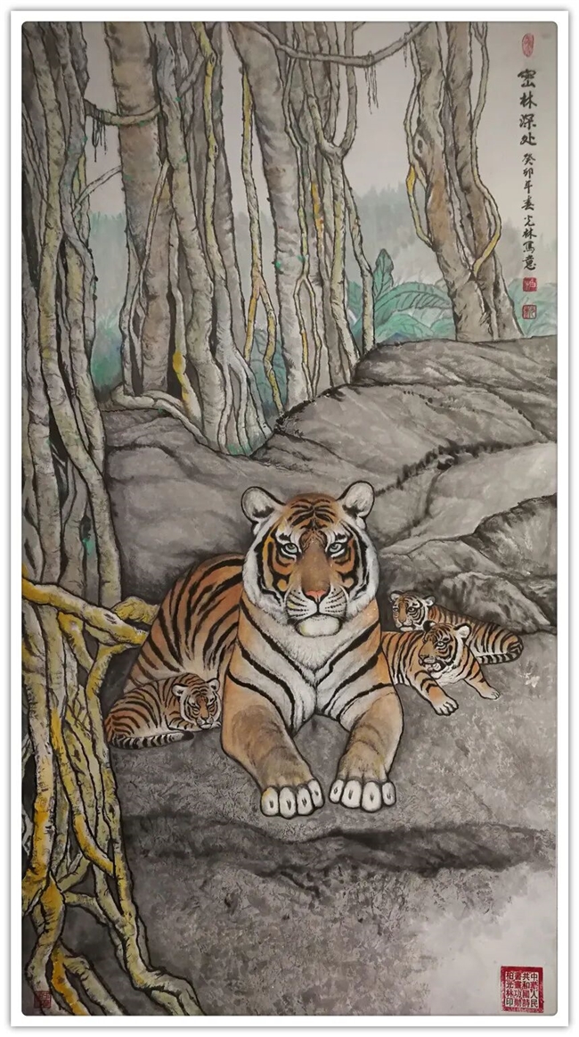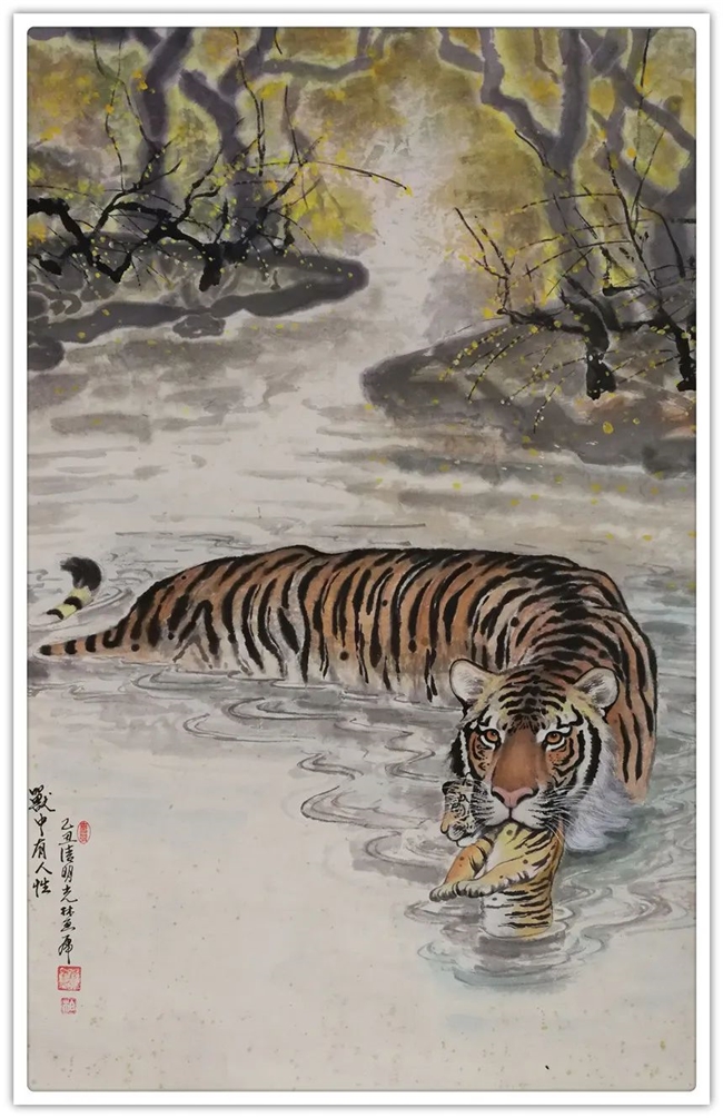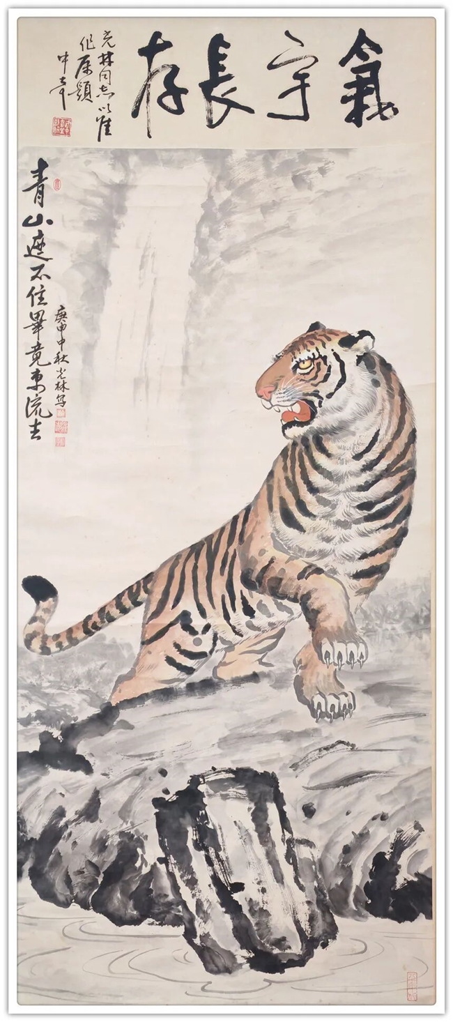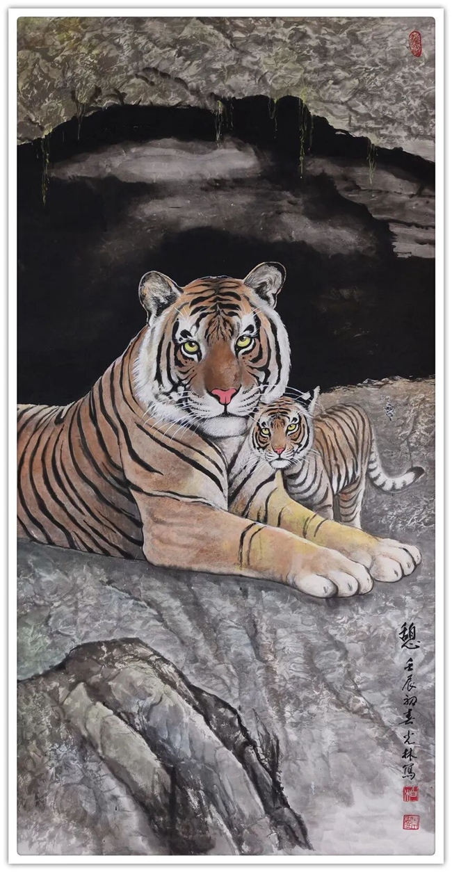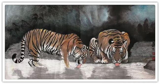 柏光林的艺术创作,始终扎根传统书画本源,题材涉猎广博,山水、人物、走兽皆造诣深厚,尤以画虎见长,成为其独步艺坛的标志性符号。他笔下山水雄浑壮阔、意境悠远,尽显天地灵秀;人物雅致传神、风骨尽显,藏人文底蕴;所绘猛虎气势凛然、神威赫赫,笔法苍劲老辣,墨色淋漓厚重,形神兼备、风骨卓然。其画作深得陆俨少、林散之、张仃等艺坛名家高度赞誉,诸位大师纷纷亲为题跋,他更与陆俨少联袂创作《双虎图》《虎啸图》,成为艺坛传世佳话,尽显其过硬的艺术功底与业界认可度。