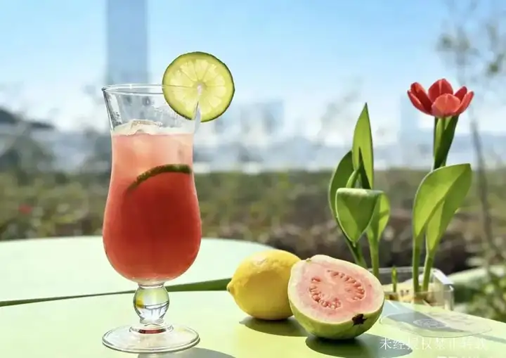 现切青柠片点缀,入口瞬间迸发清爽酸香,中和芭乐的甜腻,尾调带着柠檬的鲜劲,像春风拂过耳畔,唤醒舌尖的活力。