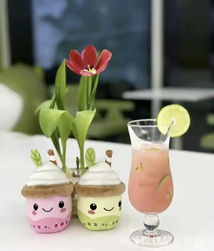 粉粉嫩嫩的茶汤,搭配青柠片的清新点缀,装在通透的玻璃杯里,光是看着,就足以治愈所有疲惫。