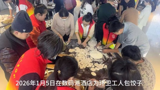 2026年1月5日 ,年关渐近 ,寒意渐浓 。财经学院的学子们牵挂着街头忙碌的环卫工人,想着他们在寒风中坚守 ,却常常来不及吃上一口热饭,便早早准备 ,只为让这些默默守护城市的人 ,能在岁末寒冬里 ,捧上一碗热气腾腾的饺子 ,虽然这天的节气是小寒 ,但是环卫工人的心是暖暖的。