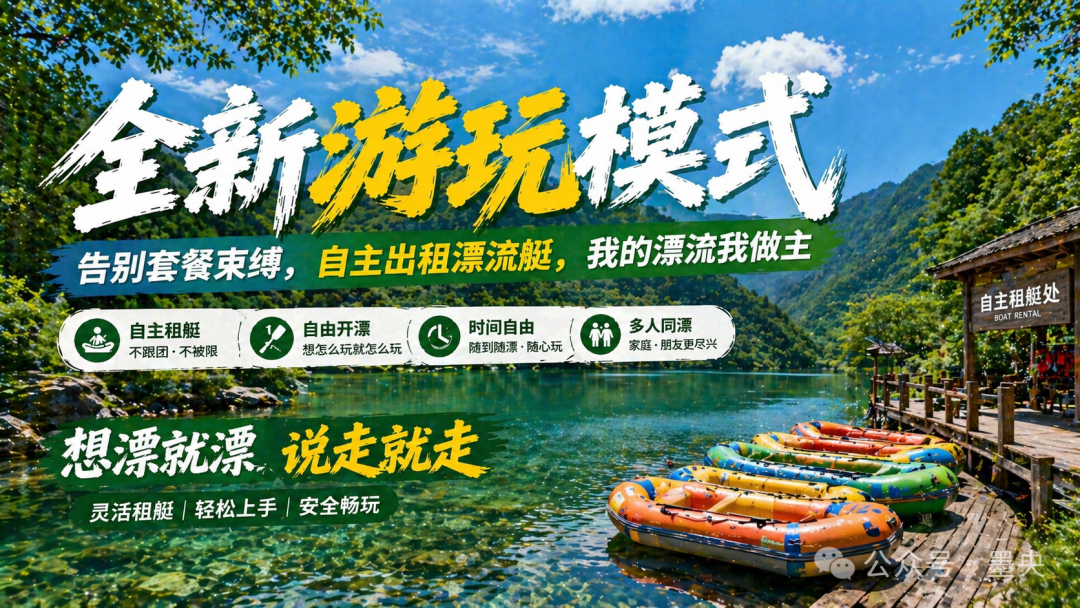 此次升级的最大亮点在于游玩模式的全面革新。景区彻底打破传统单人票、捆绑套餐模式,全线升级为船只自主出租模式。游客可根据需求选择双人情侣艇、亲子家庭艇或好友组队艇,按需租用、灵活自由,想玩多久就玩多久,不再受套餐时长和项目捆绑的限制,真正实现“我的漂流我做主”,性价大幅提升。