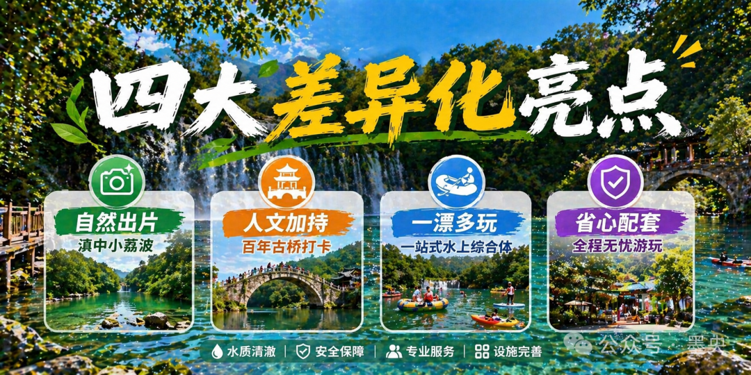 省心配套·全程无忧:全程配备专业教练与救生人员分段值守,安全保障到位;景区配套多个大型停车场,自驾停车无压力;实行0元免费入园,无强制消费门槛,所有水上项目按需单独租用,灵活消费。