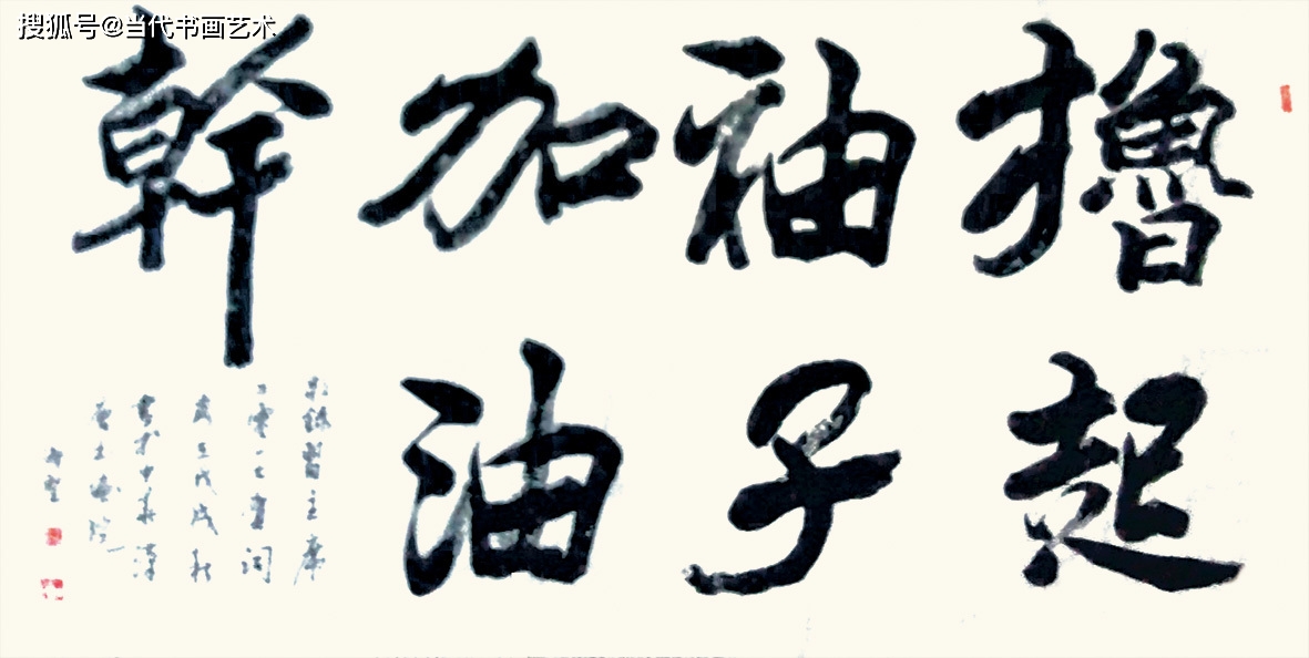 欧阳中石老师对其作品点评中说: “观行草,古法与当代精神风貌兼具。学王羲之,得其遒媚之长;学孙过庭,悟其严谨要点;学米芾,深其劲拔之韵。他的行草作品渗透了古法润达,让观者品味其中的艺术性。”