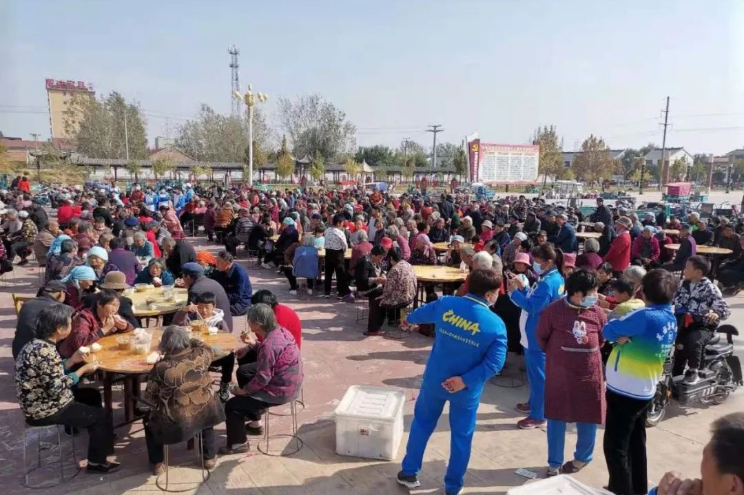 附近村庄的老人们听说了纷纷到了现场。一位七十多岁的老婆婆到现场掏出来钱要塞给姜桂花,姜桂花笑着给她说,“大娘,都是免费的,您就在这安心的吃吧”。
