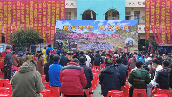 韦勇说,我们通过本届天南黑豆养生节共同见证天南村脱贫攻坚的成果,见证从石头缝里长出来的黑豆变成了黑珍珠,变成了乡亲们脱贫致富的“金山银山”!