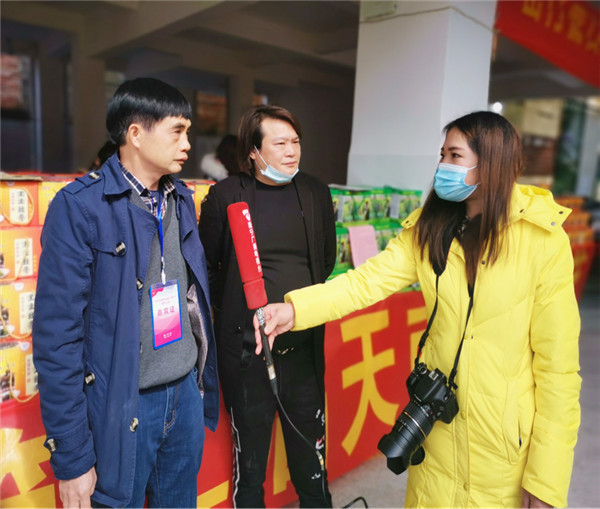 黑豆膏坊老板和返乡创业青年企业家黄万成接受媒体采访 黄光荣/摄