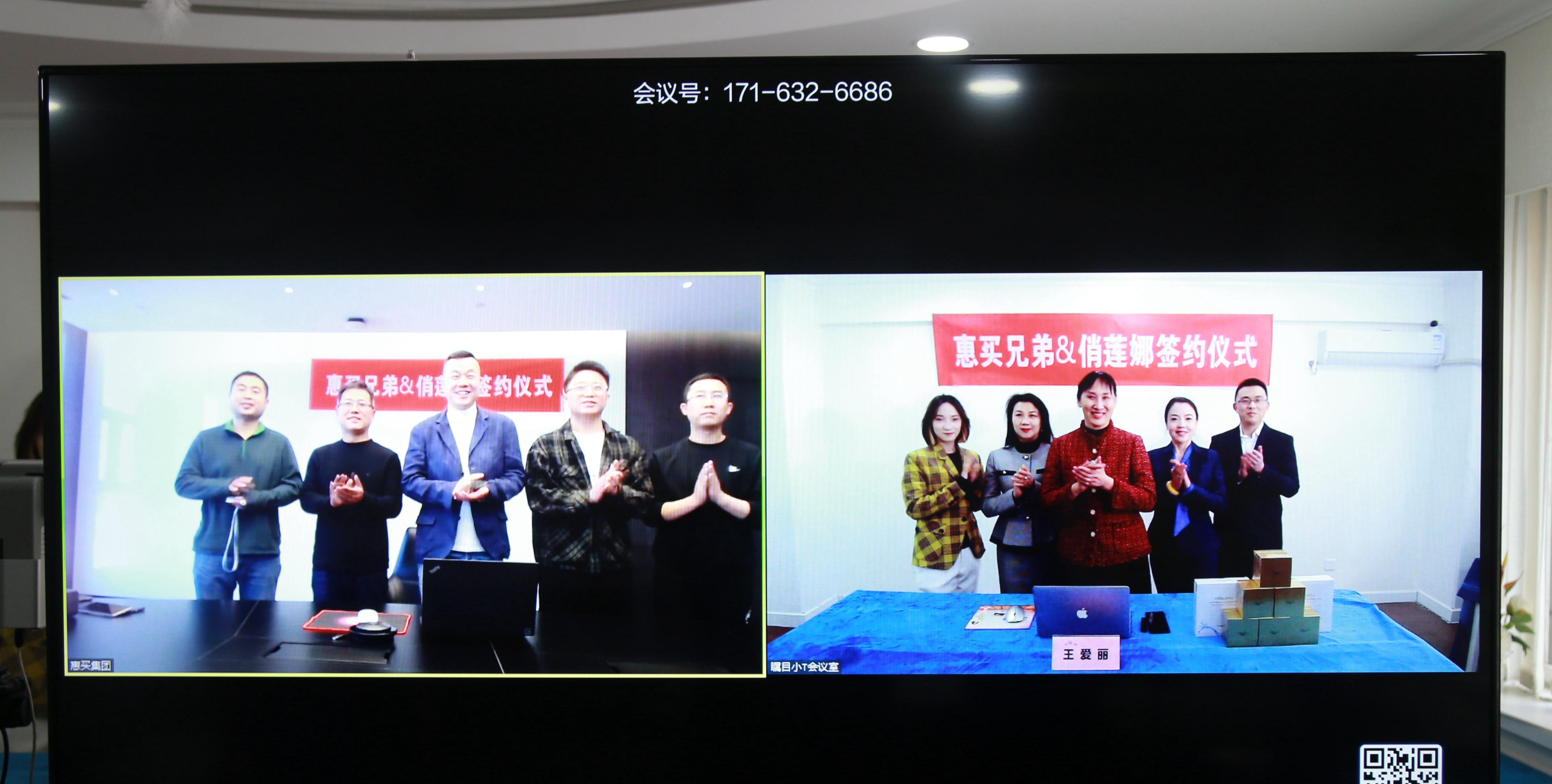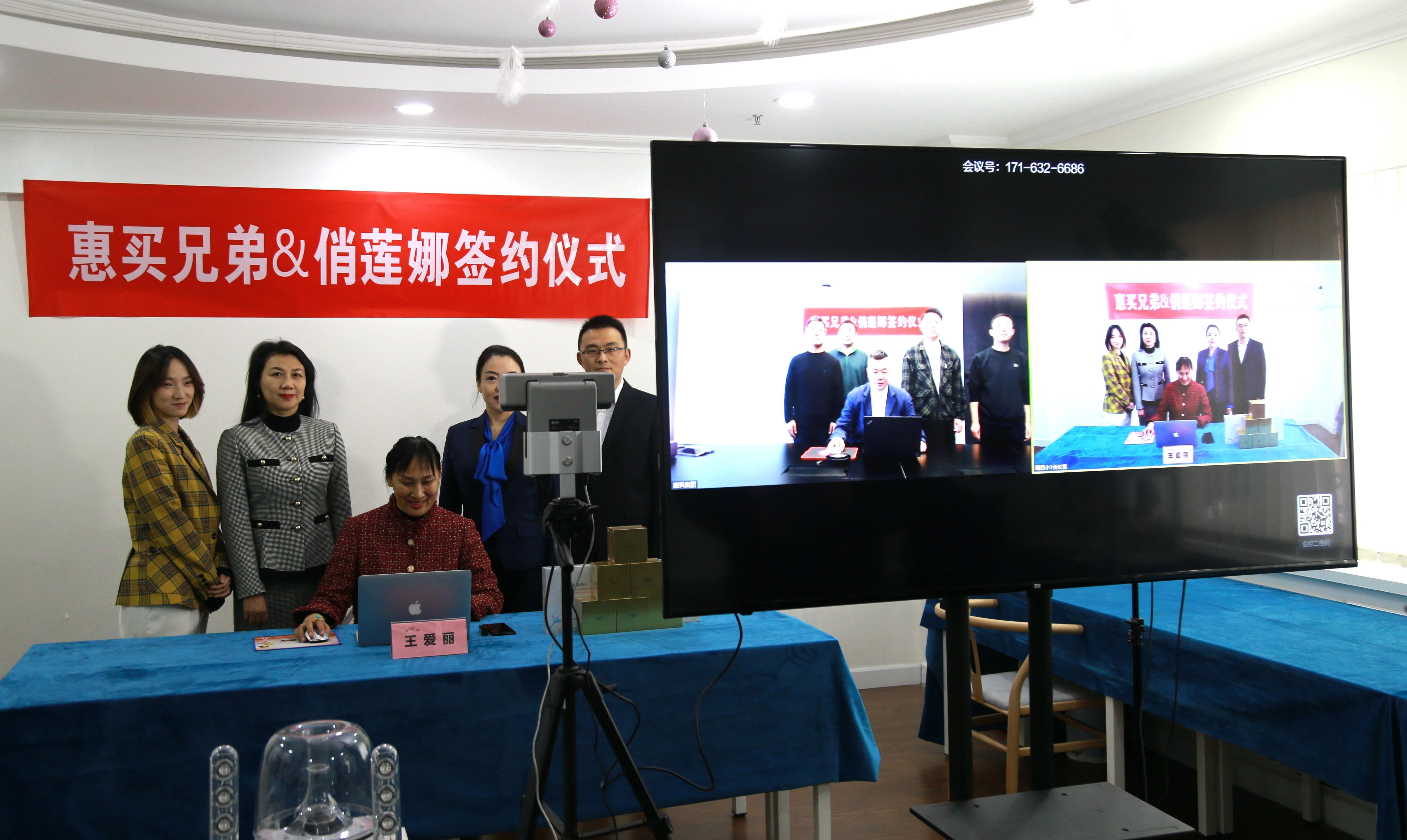 1月18日,国内直播电商翘楚惠买集团董事长杜瑞勇与护肤品新秀俏莲娜董事长王爱丽在北京举行云上签约仪式,双方联手打造疫情下牛年新春年货节里的“美颜”世界。这是首都企业为防控疫情创新工作方法,保障企业正常运转,为消费者在新春佳节期间提供优质服务的新举措。(王振摄)