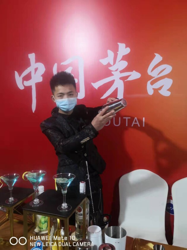 专业的调酒师为我们带来不一样的茅台鸡尾酒口感,让很多消费者都来围观。