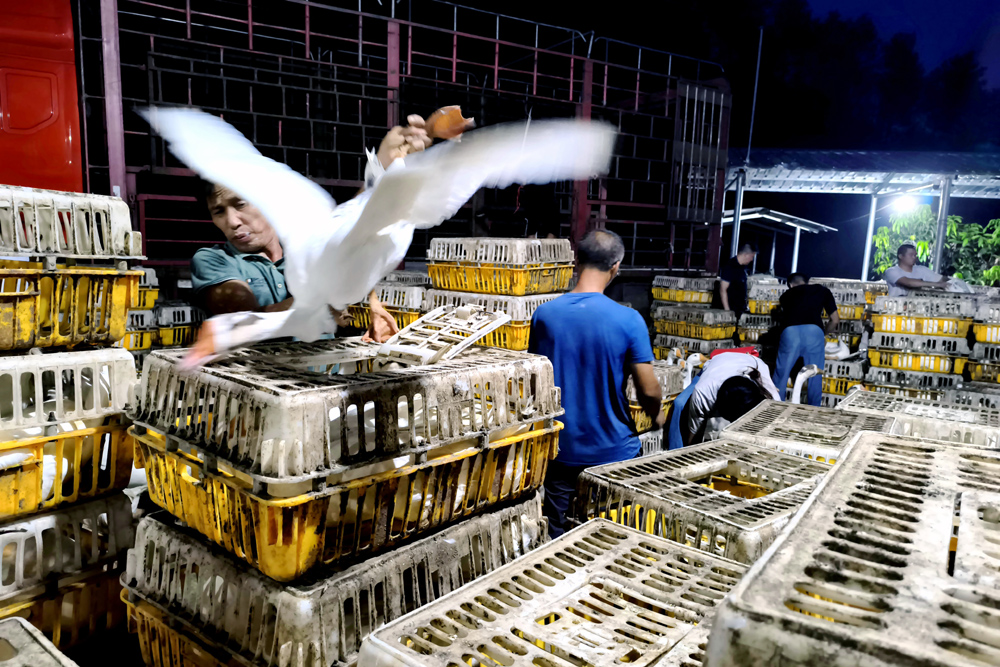 桂鹅决策者锚定“企业要发展、农民要致富”这一“双要”目标,不管企业还是养殖基地,甚至养殖户都做到“六统一”,即统一领导、统一品种、统一防疫、统一回收、统一服务、统一信息,改变了过去各自为政的散、乱、差的养殖模式,把重点转移到品种创新、技术提升和市场拓展等关键因素上来,推动鹅产业的高质量发展。 ▲养殖户将商品鹅装进笼子让公司按订单价格回收