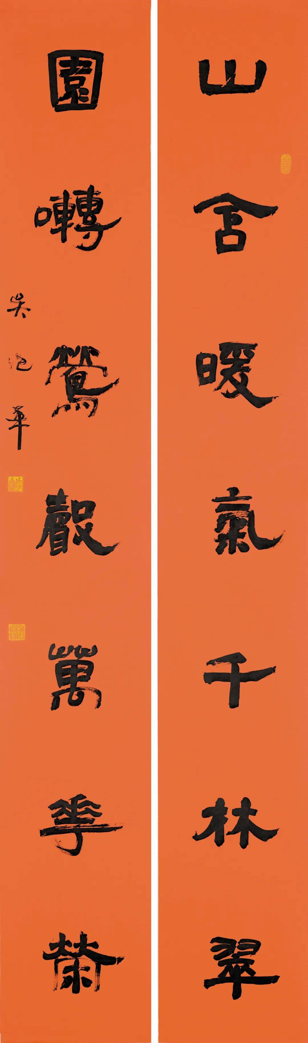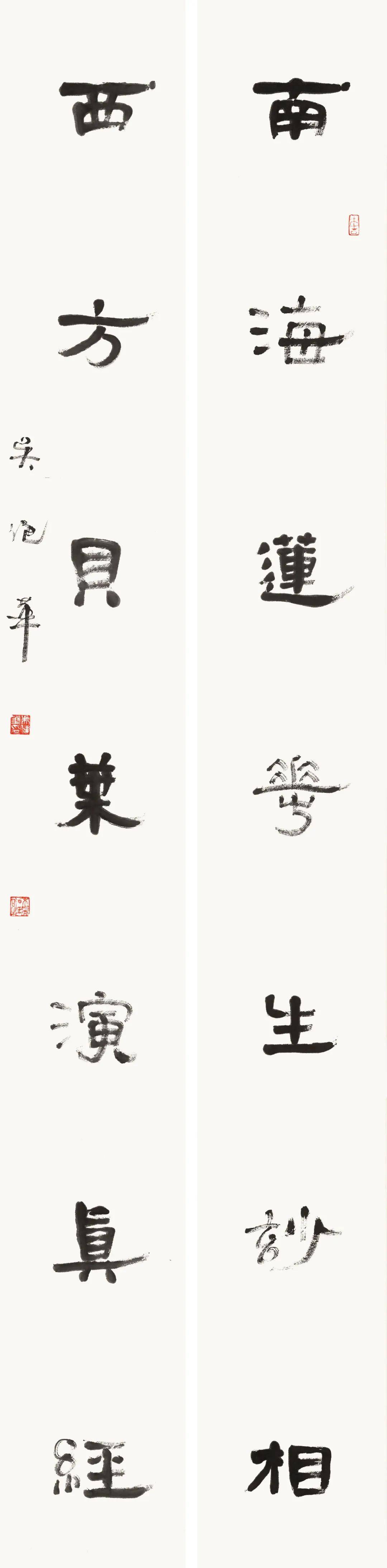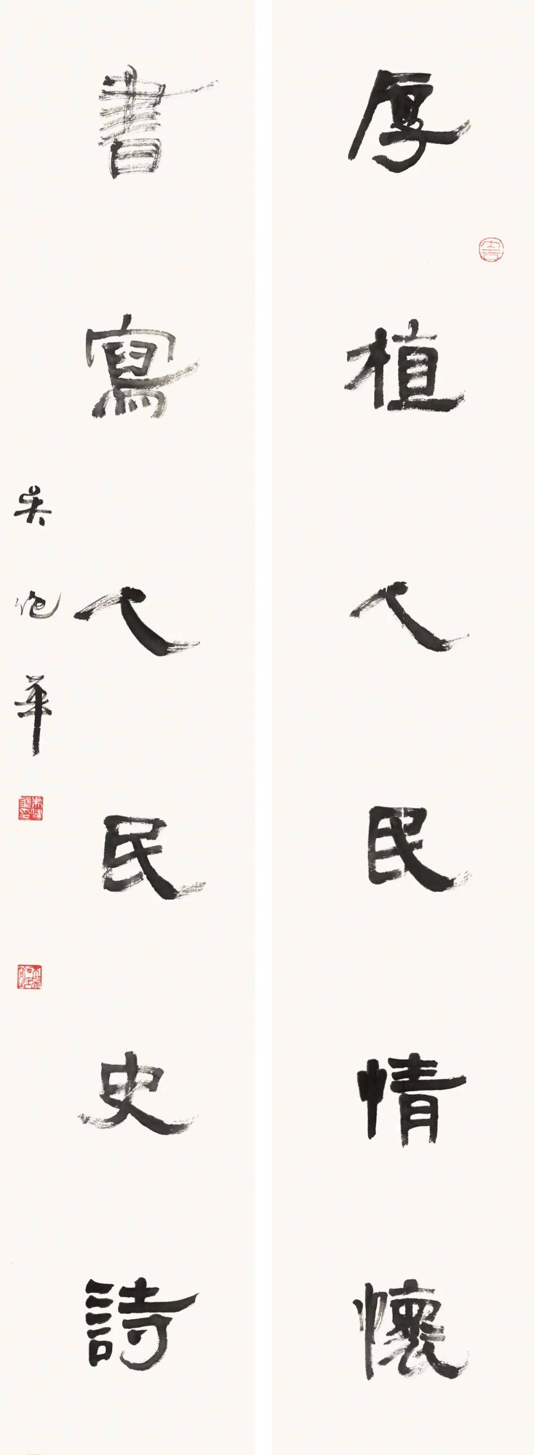 全国政协常委、副秘书长 民盟中央专职副主席、中国美术馆馆长 厚植书写联/180cm×35cm×2