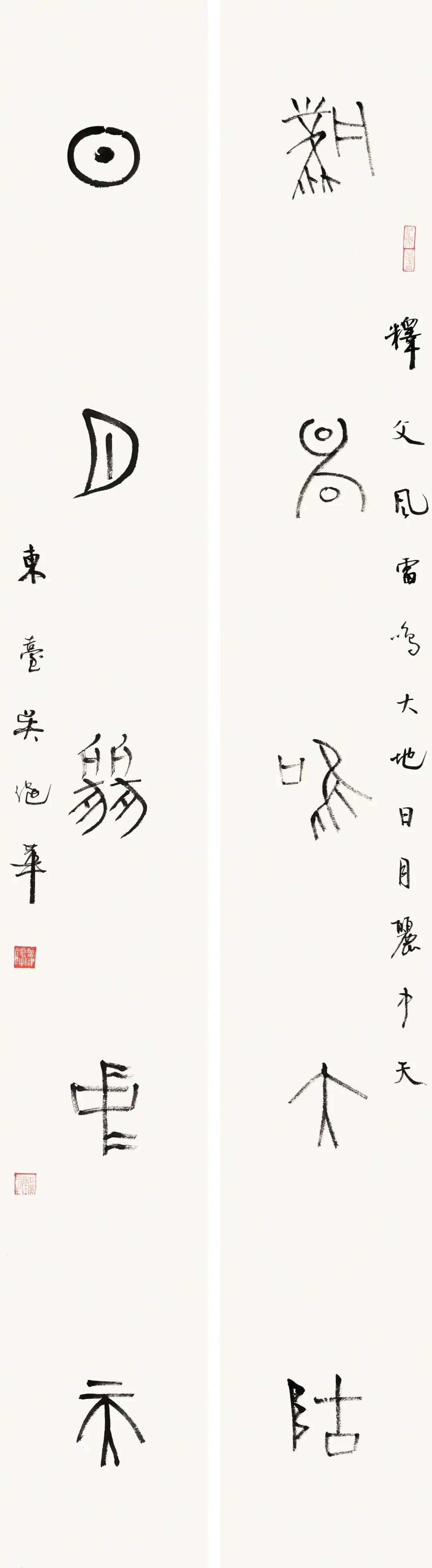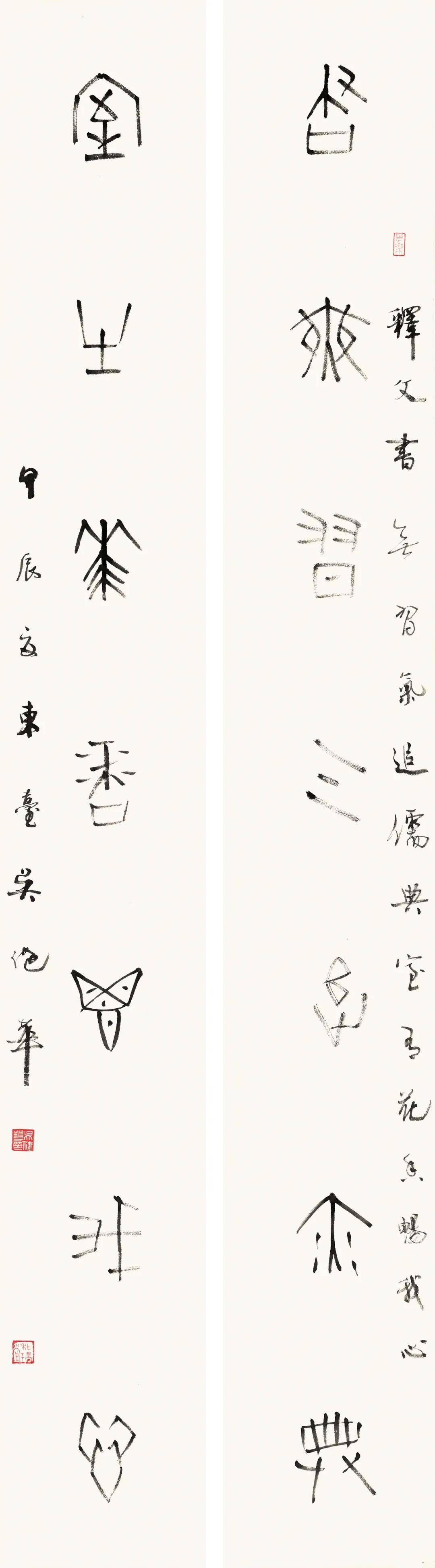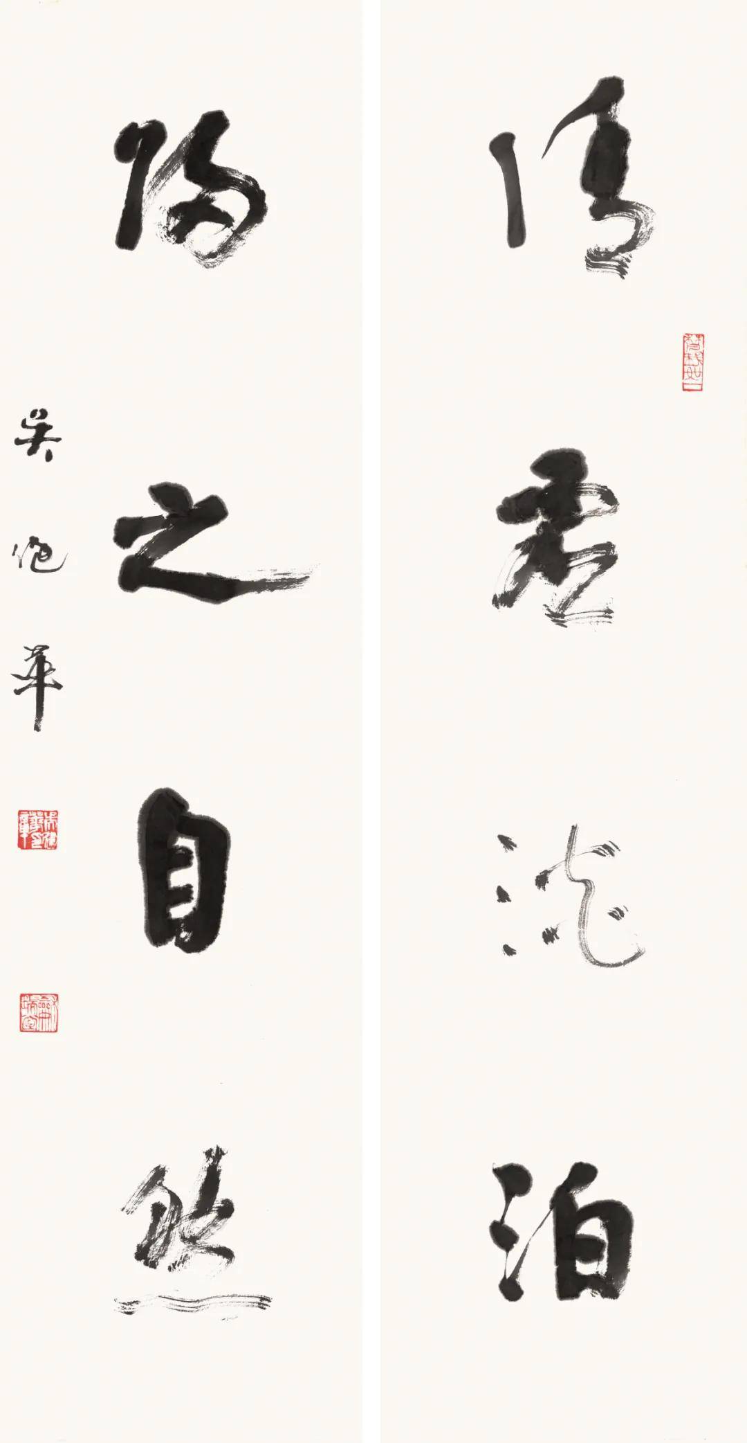 全国政协常委、副秘书长 民盟中央专职副主席、中国美术馆馆长 厚植书写联/180cm×35cm×2