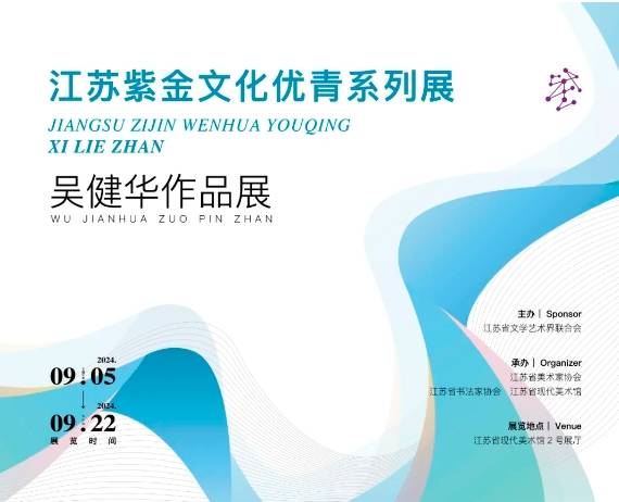 展期 | Duration 2024年9月5日—9月22日 开幕式 | Opening 9月12日(星期四) 上午10:30 地点 | Location 江苏省现代美术馆2号展厅 (建邺区梦都大街50号) 前 言 江苏英才,同心筑梦绘新篇。 紫金优青,激情飞扬逢盛世。 青年是祖国的未来,是文化事业的希望。 为进一步加强江苏文化人才队伍,推动江苏文化建设高质量走在前列,江苏省委宣传部实施了“紫金文化英才培育行动”和“紫金文化优青储备行动”,旨在贯彻落实《省委办公厅、省政府办公厅关于印发<江苏文化人才高质量发展三年行动计划>的通知》的文件精神,通过从社科理论、文化艺术、新闻出版、文化创意四个领域中培育选拔一批政治素质好、业务能力强、学风作风正的文化英才和文化优青,建成一支以紫金文化英才为中坚,紫金文化优青为支撑的高素质、专业化人才队伍,形成英才汇聚,新秀层出的江苏文化人才队伍建设新局面。 青年兴则国家兴,青年强则国家强。 江苏省现代美术馆紧紧围绕江苏美术现代化发展的目标,走近青年群体、搭建展示平台、传播主流声音,在与青年一代的同频共振中,不断凝心聚力,秉持发扬时代创新精神和艺术传承理念,策划实施“江苏紫金文化优青系列展”。 此次展览由江苏省文联主办,江苏省美术家协会,江苏省书法家协会、江苏省现代美术馆共同承办。 系列展遴选全省“紫金文化优青储备行动”中入选的书画家代表,以双个展的形式,用艺术的语言,从青年的视角,全面展示紫金文化培育行动的最新成果,展现年轻一代文艺工作者的精神面貌、创作技法、理论水平,激励更多高素质的青年文艺人才,推动文化自信自强,繁荣美术创新创作,助力“强富美高”新江苏文艺现代化高质量发展,奉献给伟大的党和伟大的人民。