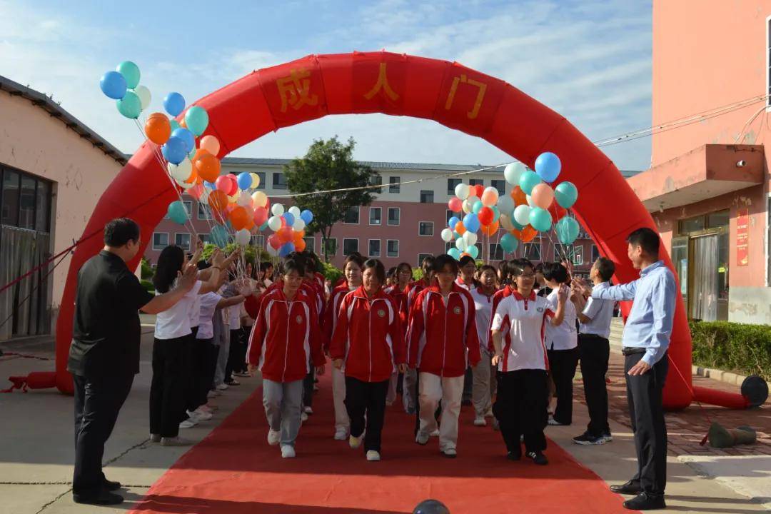 在五彩斑斓的梦想气球升空之际,在师长的殷殷期盼和美好祝愿之中,学生依次穿越成人门,从青涩走向成熟,从依赖走向独立,启航新程,筑梦未来。