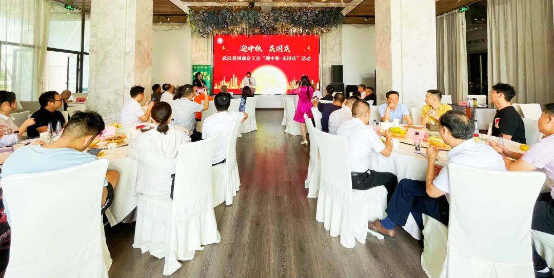 2024年9月14日下午,在中秋与国庆佳节即将来临之际,武汉黄冈商会工会在武汉市东湖印象举办“迎中秋庆国庆”活动。武汉黄冈商会会长喻鹏,党委委员、常务副会长、工会主席陈常青,常务副会长赵伟,驻会副会长秦彬,副会长田胜生、许建斌、宋育臣、袁金刚、汪宗锐、倪承泉、杨波、张浩和商会理事、工会会员以及特邀嘉宾武汉武穴商会会长朱华雄等先后80余人参加了本次活动,大家欢聚一堂,共度佳节。活动由商会工会副主席兼秘书长占语梵主持。
