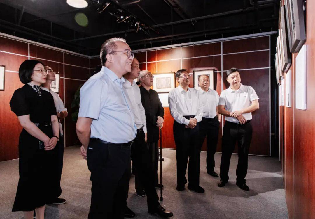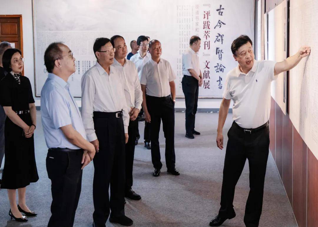 杨智主席一行首先来到卓尔美术馆,在武汉市文联与武汉黄冈商会负责人的陪同下参观“古今群贤论书·《评跋萃刊》文献展”,武汉市书法家协会主席瞿忠谋详细介绍了展览情况。本次展览由湖北省书法家协会、武汉书法家协会和武汉卓尔美术馆举办,展示了《评跋萃刊》收录的拓本影印件和当今20余位书坛名家的书法作品。杨智主席一行对展览表示高度肯定,认为此次文献展不仅是一次艺术的盛宴,更是对传统文化的传承与弘扬,充分展现了古今书法家们高超的艺术水准和良好的精神面貌,传递出厚重的家国情怀。 参观展览后,武汉市政协一行与武汉黄冈商会负责人、企业家代表在卓尔书店会议室进行交流座谈。