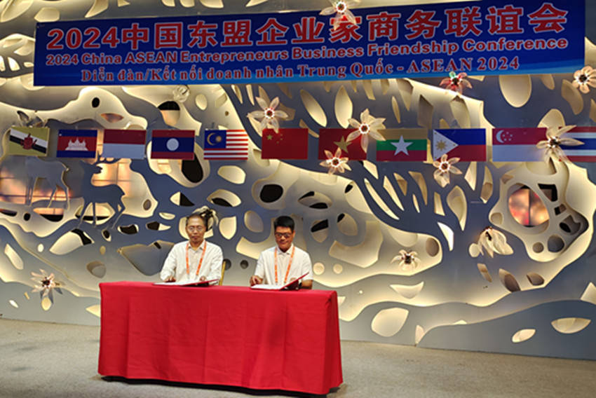越南全球电子商务协会常务副会长黎德旗也在致辞中表达了对双方合作的期待与信心。他强调:“东盟与中国在电子商务领域的合作前景广阔,我们愿意与中方企业紧密合作,共同探索跨境电商的新模式、新路径,携手开创合作新篇章。” 联谊会的高潮部分,广西电子商务协会与越南全球电子商务协会签署了合作协议,标志着双方在跨境电商领域的合作进入了一个新的阶段。这一合作协议的签署,不仅为两国企业搭建了更为直接、高效的沟通桥梁,也为双方未来的互利共赢奠定了坚实基础。