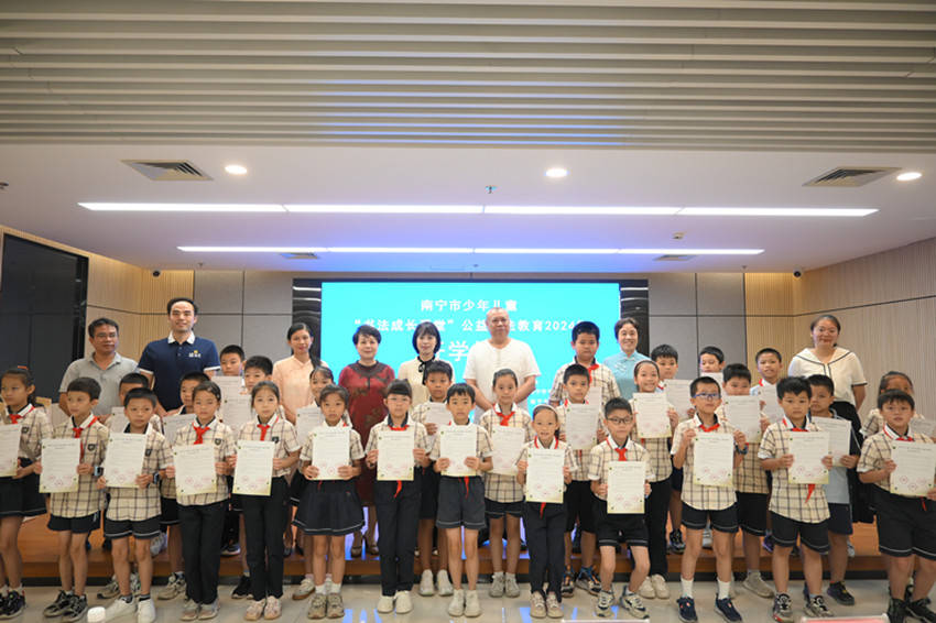 南宁市少年儿童图书馆书记刘斌,南宁市少年儿童图书馆副馆长陆庆,南宁市工人文化宫副主任李洁,南宁市青秀区文联主席唐蓓,广西书法家协会原副主席、南宁市书法家协会常务副主席刘小静,南宁市书法家协会原主席、南宁市书羽艺术培训学校校长陈小冰,南宁市书法家协会副主席、青秀区书法家协会主席唐礼武,南宁市书法家协会副主席黄成文、黄耀登,广西女书画家协会理事钟红雨、南宁市书法家协会理事、青秀区书法家协会副主席王亚曦,卢梅珍,南宁市书法家协会理事、兴宁区书法家协会副主席冯碧莹,南宁市书法家协会理事、“书法成长课堂”教师庞南、刘树彪、黄欢欢、莫秋兰、左诗思等出席本次活动。参加本次活动的还有:南宁市少年儿童图书馆、南宁市工人文化宫、南宁市书法家协会、南宁市书羽艺术培训学校、“书法成长课堂”2024级全体同学、家长、老师250余人参加。