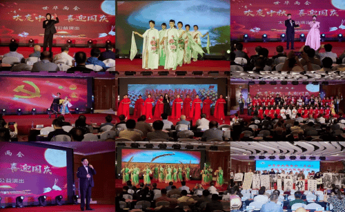 新老副会长陈大良、刘学庆先后进行了表态性发言,对重启世华公益行活动表示深深的祝贺!全国著名山水画画家、中国非遗联盟总部安徽执行秘书长、上海静安书画院副院长陈大良先生感言:我的宝贵青春年华献给了北京,献给了祖国和平与建设事业,现在虽然成了古稀老人,但我初心不变,将不遗余力地将余生献给人类和平事业、祖国复兴大业。陈大良先生宣誓:不服老、不认老,夕阳映青山,将一如既往地积极作为,不负众望,为践行公益,力所能及地服务社会贡献力量!发言引起共鸣,与会人士群情激奋、信心满满,誓言不忘初心、牢记使命。现场氛围浓厚,情景动人心弦,感人肺腑! 公益活动精彩纷呈 爱国人士踊跃参加 “喜迎国庆”大型公益演出活动包含三个篇章、二十个节目—— 开场舞《盛世欢歌》,欢快喜庆,祝福祖国75岁生日的情感溢于言表,深情表达了“我爱你—中国”的崇高情怀! 在《开拓未来》篇章中,从《在希望的田野上》到《阳光路上》,对祖国美好未来充满期待!公益演出不仅为与会的海内外华人华侨奉献了一场精彩纷呈的文化盛宴,还增强了大家的道路自信、理论自信、文化自信和制度自信! 据悉,此次公益文艺演出由著名导演许丹指导,由郝韵林、李丽霞、吴笛、李静主持,演出活动精彩纷呈:乐队演奏《红旗颂》、开场舞《盛世欢歌》、男生独唱《欢聚一堂》、民族舞蹈《卓玛》、萨克斯演奏《听妈妈讲那过去的事情》、男生独唱《我的月亮》、旗袍秀《水墨中国》、女生独唱《在银色的月光下》、女生独唱《我用歌声拥抱祖国》、舞蹈《白毛女》、女生独唱《前门情思大碗茶》、现代舞《当那一天来临》、男生独唱《我爱你中国》、歌舞表演《逛新城》、男声独唱《最美的歌唱给妈妈》、时装模特表演《走向未来》、女声独唱《我爱你伟大的祖国》、舞蹈《在希望的田野上》、男女生二重唱《阳光路上》、合唱《歌唱祖国》等精彩节目,把活动一次次推向高潮,掌声雷动,喝彩声此起彼伏、不绝于耳。