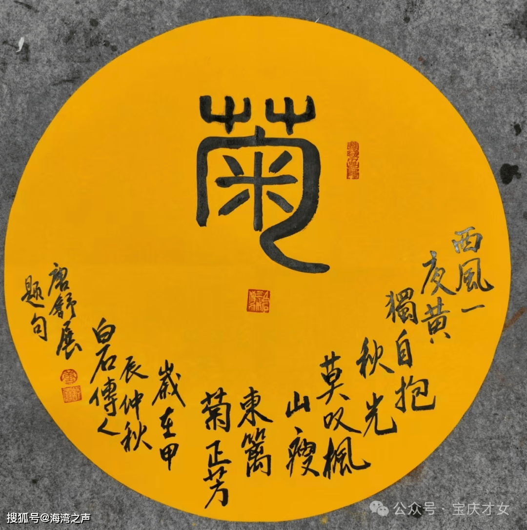 菊艳桂香浓, 一片丹心寄。墨客吟诗赋彩虹,把酒人陶醉。