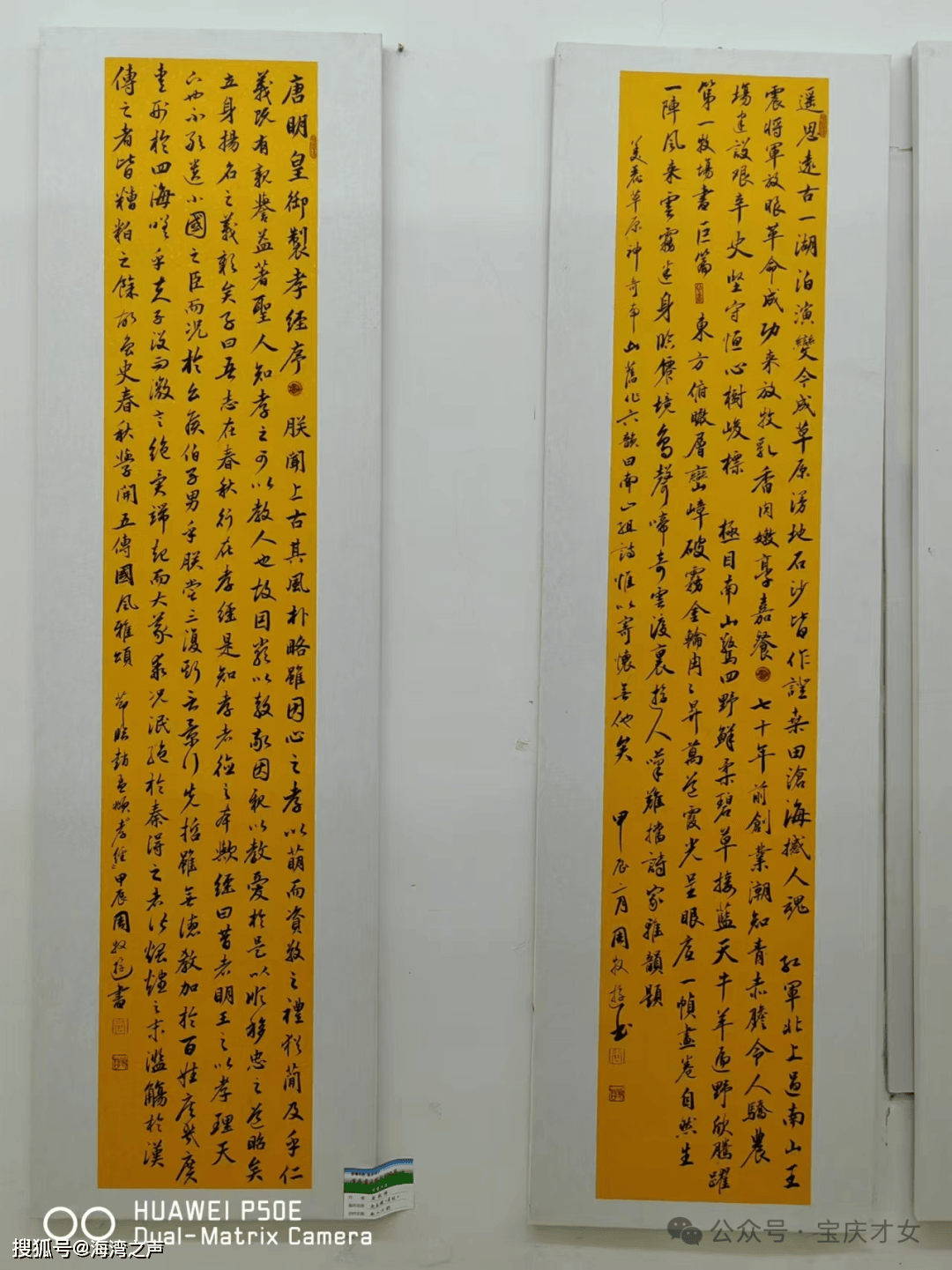 名诗放彩悬墙柱,妙句含情挂榭台。