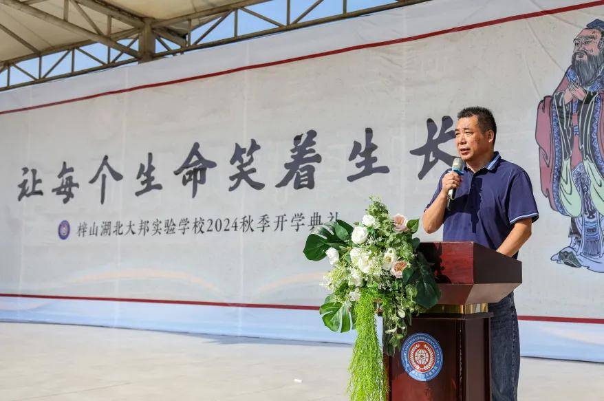 “梓山湖北大邦实验学校作为联投与安徽北大邦教育集团携手打造的教育典范,在过去七年里,我们共同见证了学校在教育质量、师资力量、校园设施等方面的卓越成就,这些成就不仅得到了社会各界的广泛认可,更激励着我们继续前行。”湖北省联投集团梓山湖公司总经理周赛在讲话中表示,期待咸宁梓山湖北大邦实验学校在新的学期里再创佳绩,书写更加辉煌的篇章。