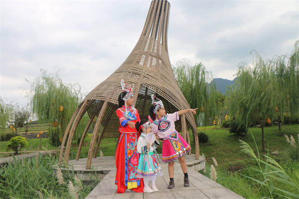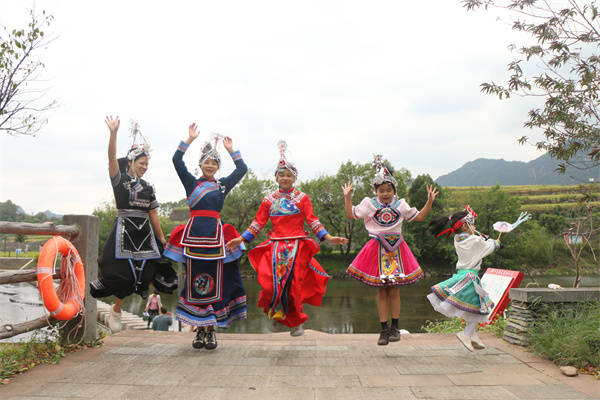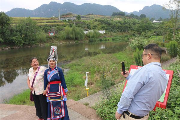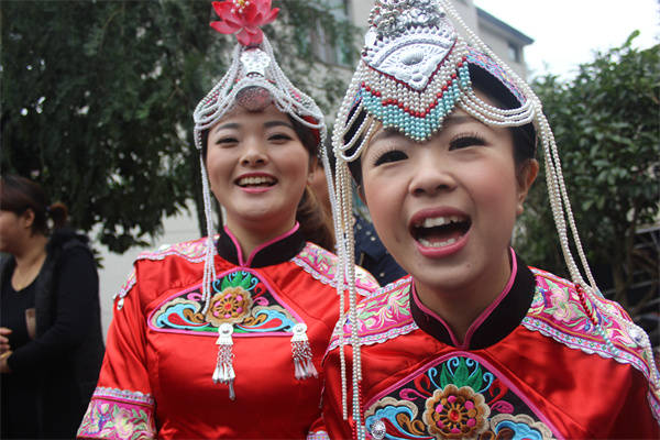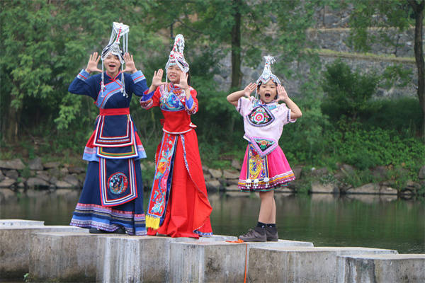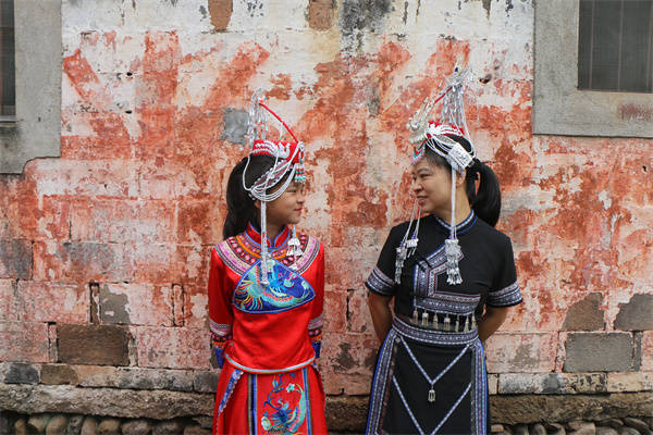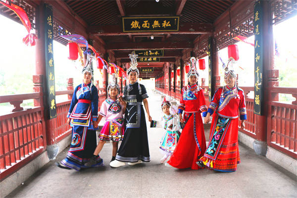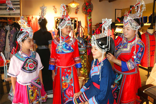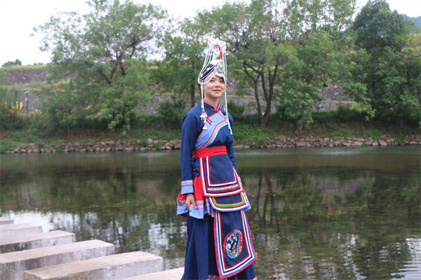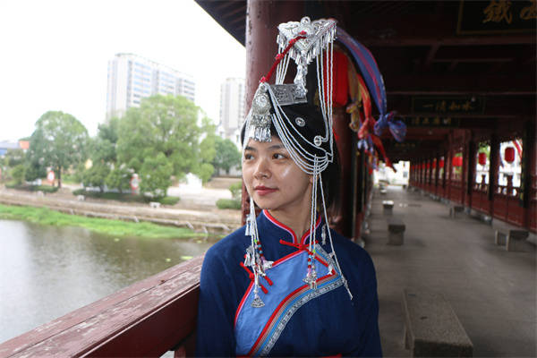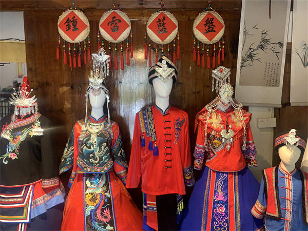 走进位于浙江省武义县柳城畲族镇城东路的“畲小娘工作室”,游客们便会被室内几尊身着畲族服饰、佩戴头饰的模特和摆放有序、款式各异、色彩艳丽的各种畲族头饰所吸引。那精美的图案和制作工艺,简陋而富有特色,令人赞叹不已,纷纷租一套来在附近的溪水边、廊桥上、县后老街等地拍起照片上传到朋友圈。