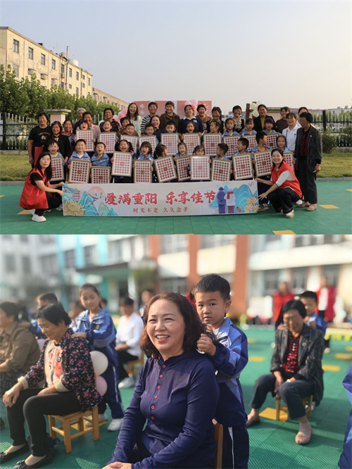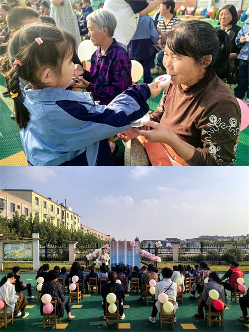 幼儿园邀请了部分爷爷奶奶来到园内,与孩子们一起共度佳节。孩子们为爷爷奶奶捶捶背、给爷爷奶奶喂重阳糕,老人们看着孩子们所做的一切,脸上洋溢着幸福的笑容。活动结束后,孩子们为爷爷奶奶送上了自己亲手制作的礼物—送百福,用实际行动表达着对老人们的关爱。