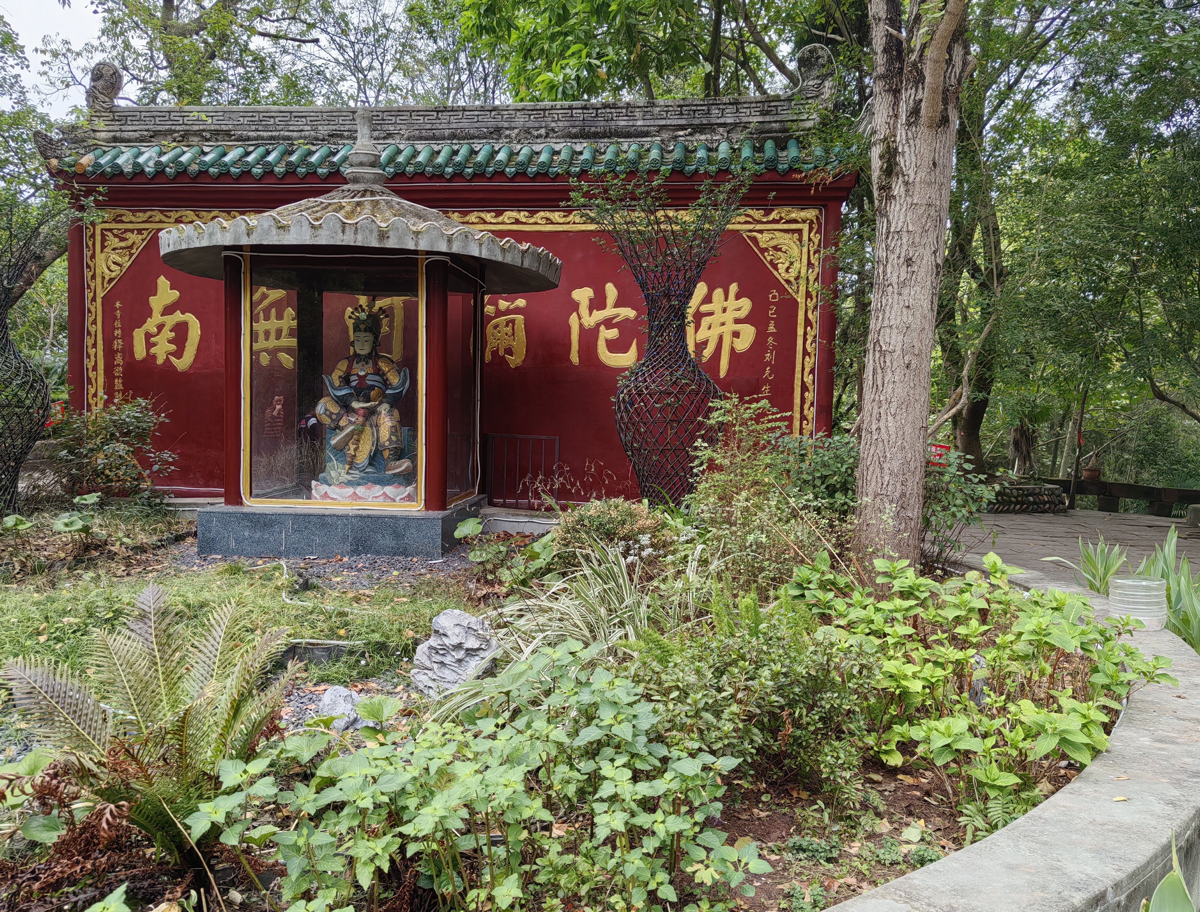 十四,刘克生题字 (百岁诗词家刘克生题“南无阿弥陀佛”于报国寺) 如椽大笔壮千秋, 名允蜀中第一流。 诗韵琅琅称国手,